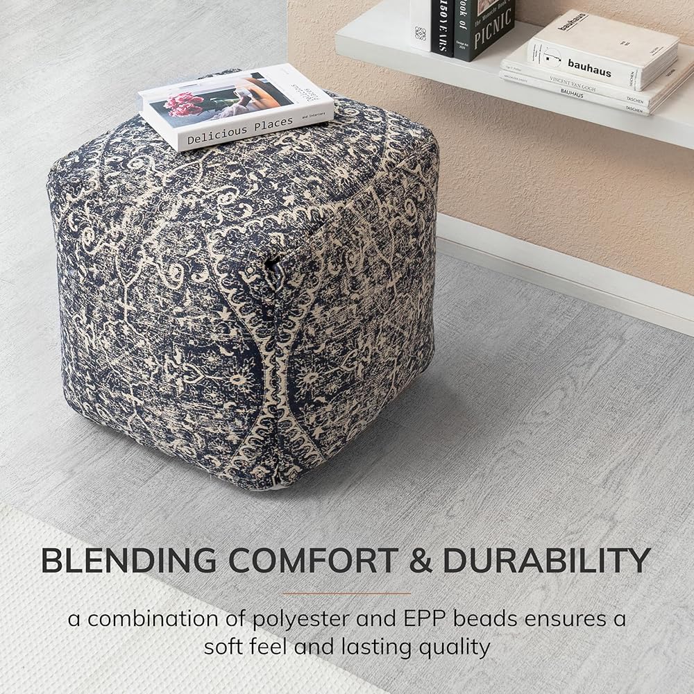 Pre-filled EPP beads: This pouf ottoman footrest is pre-filled with firm and recyclable Expanded Polypropylene (EPP) Beads, offering both support and comfort. The EPP beads not only provide a soft seating experience but also contribute to sustainable living practices, making this stuffed pouf a smart and eco-friendly choice.
