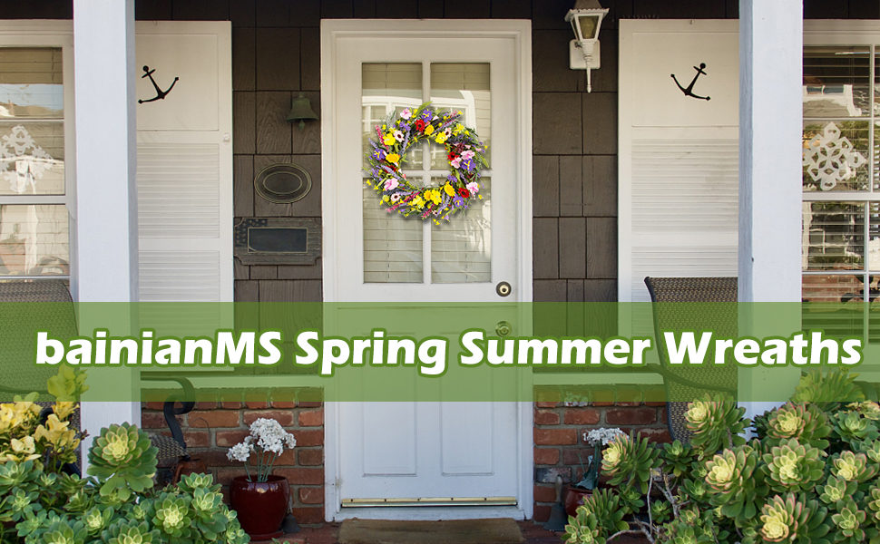 ❀Occasion: bainianMS Summer wreath is suitable for front door, wall, indoors,outdoors,window,fireplace,farmhouse, living room, porch, centerpiece party, wedding, holiday and festival celebration. It will provide your home a feeling of natural and vatality.