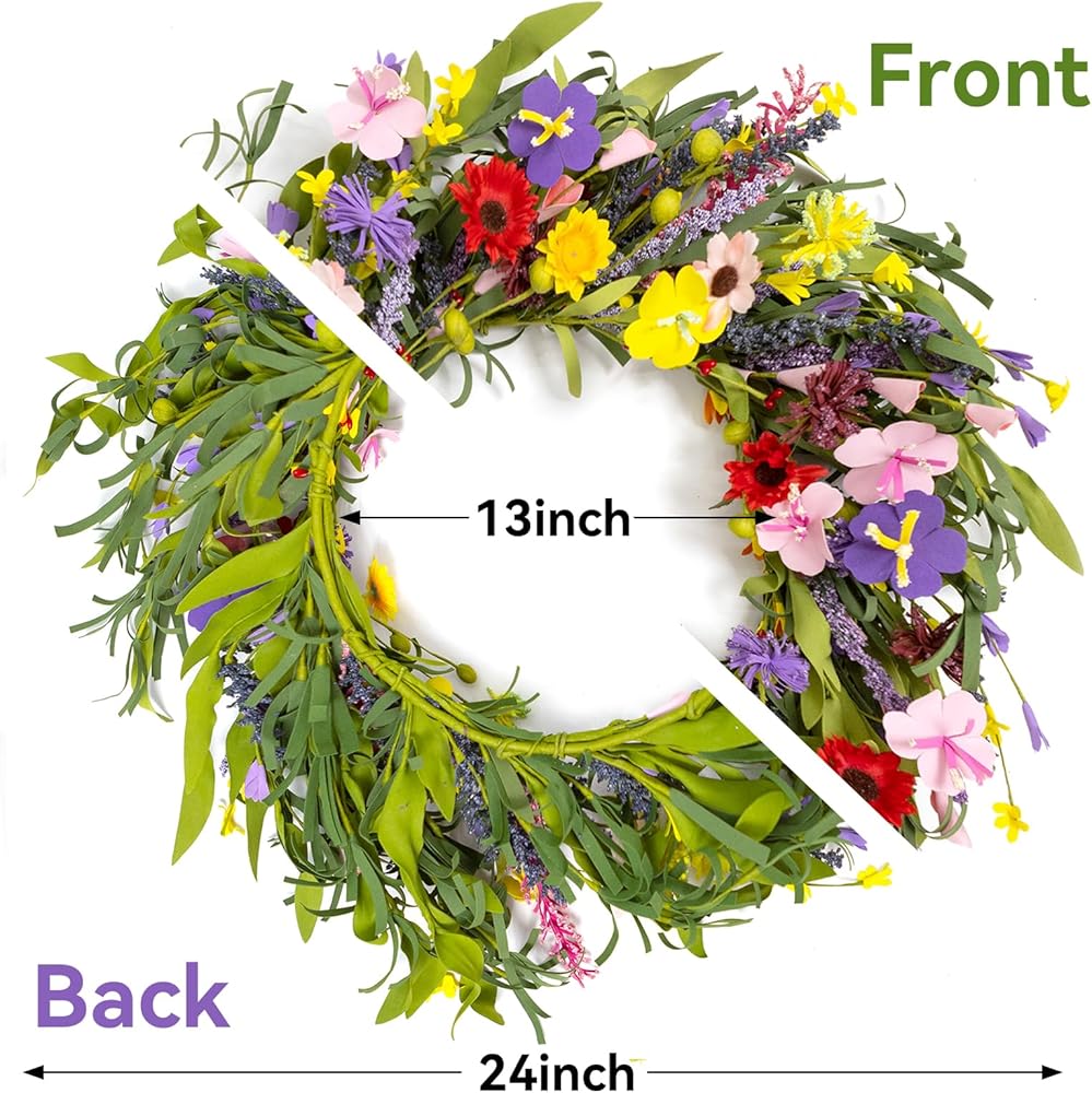 Wreaths for Front Door Clearance 24 Inch Spring Summer Outside Artificial Flower Handmade Wreath with Daisy and Lavender for Indoor Outdoor Reef Home Farmhouse Decor