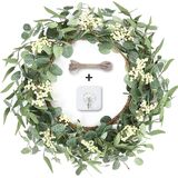 ❀Note: In order to prevent the wreath from being damaged during transportation, the wreath decoration will be tightened. When you receive your package, you will see a small wreath. Don't worry, you need to extend branches to get a 24inch wreath just like that on the picture!