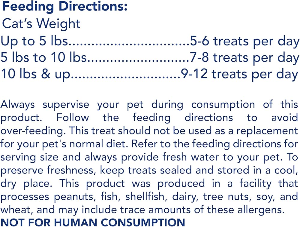Get Naked's Cat Crunchy Treats are the smart way to treat your cat each day. Our Calming Health Formula contains functional ingredients like chamomile & tryptophan to help your cat maintain calm behavior, along with supportive taurine & lysine for overall good health, plus DHA and Omegas to help keep their skin and coat healthy. These tasty crunchy cat treats help keep your kitty's teeth clean while chewing and give them purr-fectly fresh breath. And with less than 1 KCAL per cat treat, you won't feel guilty giving them multiple rewards throughout the day.
