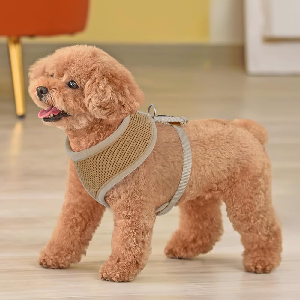 Magshion Dog Vest Harness with Adjustable Chest for Extra Small Dog, Breathable Mesh Padded Pet Harness with with Buckles & Back D-Rings, Pet Supplies for Walking, No Pull No Choke, Light Brown, XS