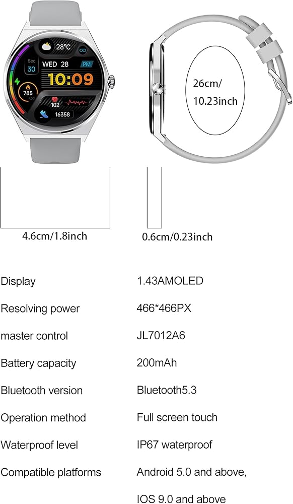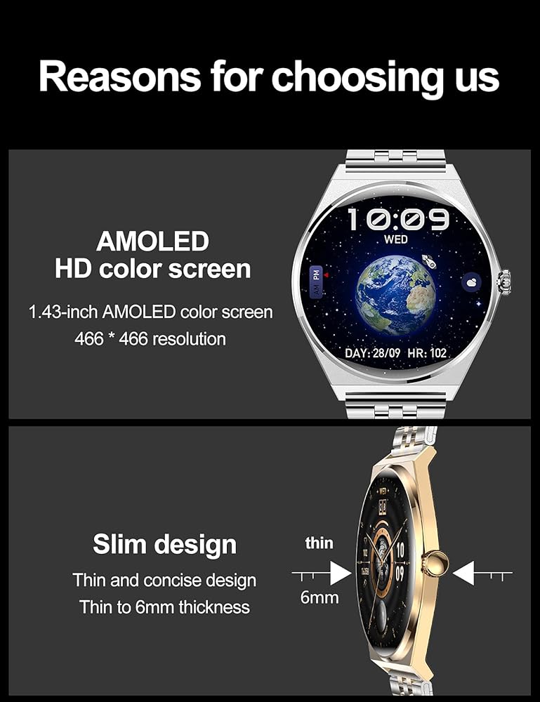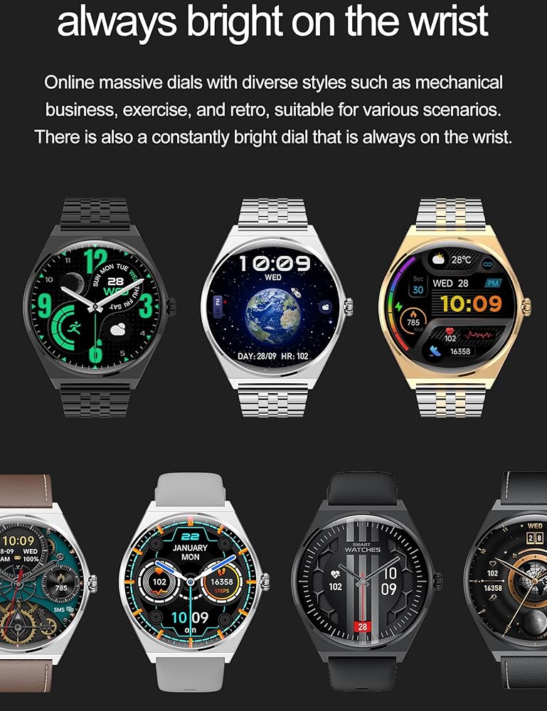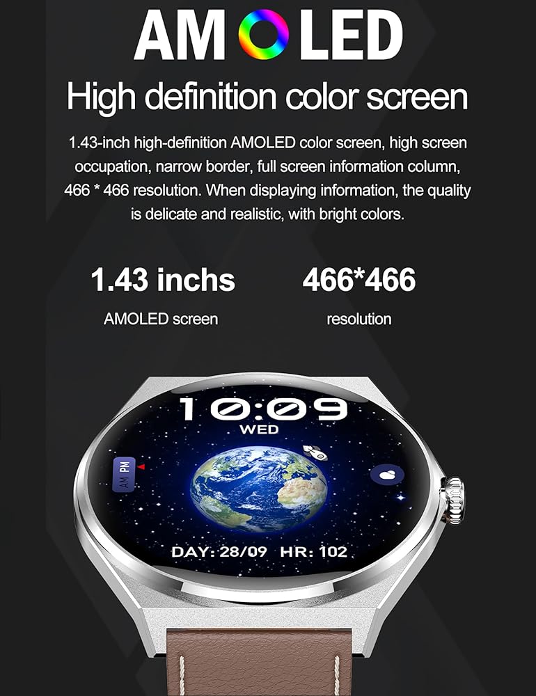 【200+ DIY DIALS & HIGH-RESOLUTION DISPLAY】This activity trackers and smartwatches is equippedWith a 1.43inch AMOLED 466*466 high-resolution color screen round smart watch, delivering highly responsive touch and provide excellent picture quality. smart watch for women man five levels of brightness options allow you to easily read information in the sun or dark. can bring you a unique visual and better interactive experience. you can also select your favorite photo like family, selfie, pets photo, landscape photo as a wallpaper in your activity & fitness trackers.