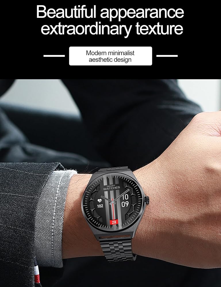 【24H HEALTH MONITOR & SMART REMINDER】This smart watch for women men provides 24H health tracking, monitoring your sleep, heart rate, blood oxygen, and stress status day and night, allowing you to understand and control your health at any time. With smart notifications, you can check messages and reminders in time. The water drinking reminder and sedentary reminder remind you to replenish water, stay away from sitting for a long time, and promote a healthier daily life! (We suggest keeping the Bluetooth distance within 10m for a stable Bluetooth connection.)