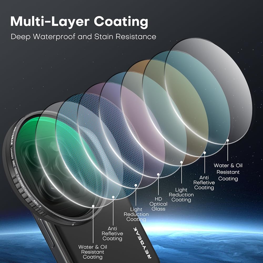 【Multi NANO Coated HD Optical Glass】Our circular filters feature a multi-layer coating that not only ensures superior HD image quality with reduced glare and ghosting, but also ensures accurate color reproduction. Both sides of the lens are waterproof, oil-proof, and scratch-proof, ensuring a balanced light track and clear image quality.
