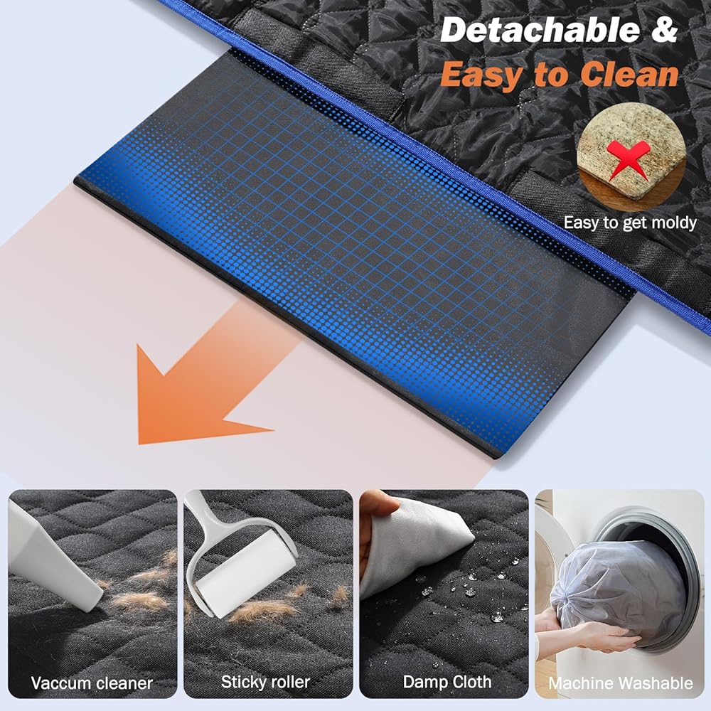 【STURDY & WEAR-RESISTANT】This back seat pet cover for dogs is equipped with a locking zipper and buckle with a lock, edge upgrade reinforcement, making it stronger and more sturdy. The dog car seat protector is crafted from 6 layers of upgraded 600D Oxford fabric with advanced heat-pressing technology, 100% scratch-resistant and waterproof, fully protecting your car seat from scratches, mud, and pet slobber and hair.