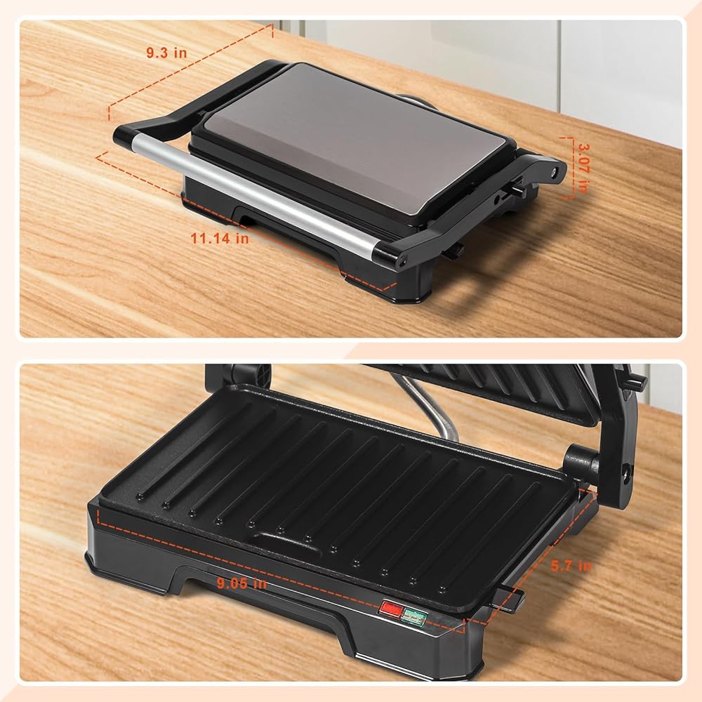 3 in 1 Panini Press Grill: This machine can be used as a panini maker or contact grill, but it can also be opened 180° to become a grill. Adjust the hinge on the handle according to your needs to make your favorite food