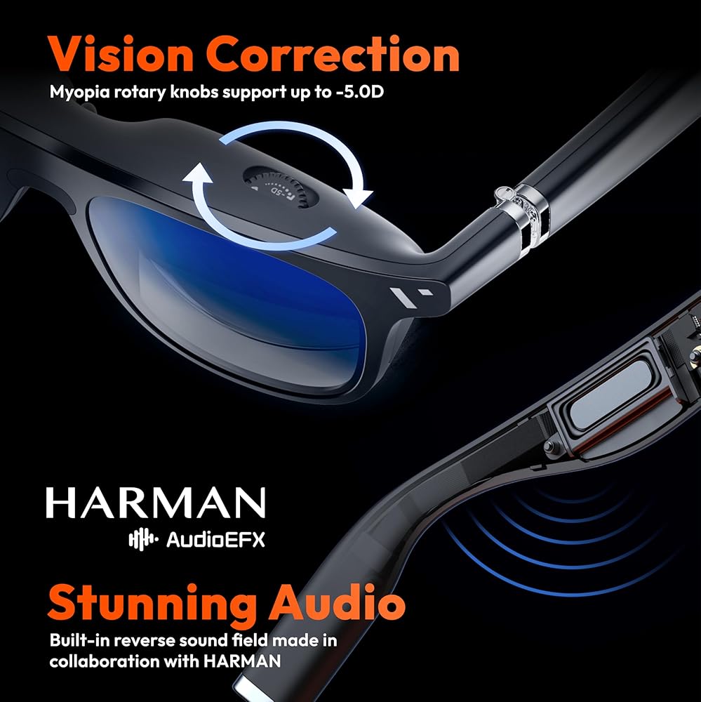 【Myopia Adjustments To Provide Highest Clarity】VITURE One Lite XR/AR Smart Glasses support adjusting the virtual image up to -5.0D (500 degrees) for users with myopia (nearsightedness). Easily set the dials above VITURE One Lite's lenses to your vision prescription for crystal clarity as you immerse yourself in the worlds of your choosing.