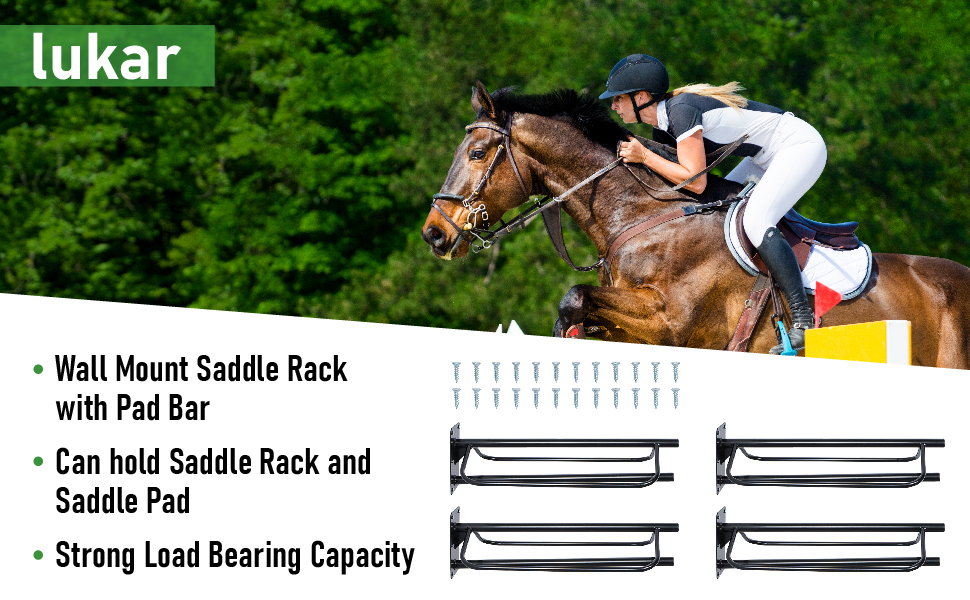 lukar 4PCS Wall Mounted Saddle Rack with Pad Bar, Horse Saddle Pad Rack Metal Saddle Rack Stand Horse Tack Storage for Saddles,Blanket,Pad, Max 45lbs Load Capacity