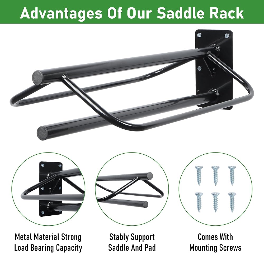 ①【Sturdy Horse Saddle Rack】The wall mounted saddle rack is made of premium steel with anti-rust coating, it's smooth in surface, corrosion-resistant and rust-resistant. It's also not easy to break, deform or bend. The saddle rack standc has great load bearing capacity