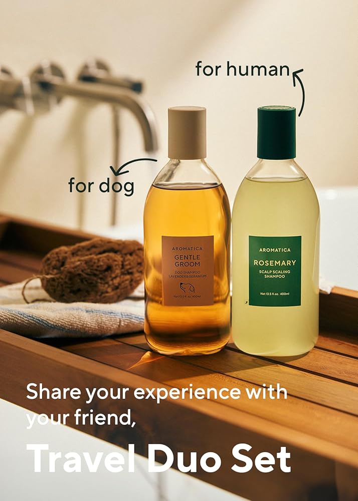 AROMATICA Me & My Dog Shampoo Travel Duo Set [3.38oz/100ml] - Rosemary Shampoo for Sensitive Scalps and Dog Shampoo for Itchy Skin Relief & Smelly Dogs with Plant-Based Ingredients