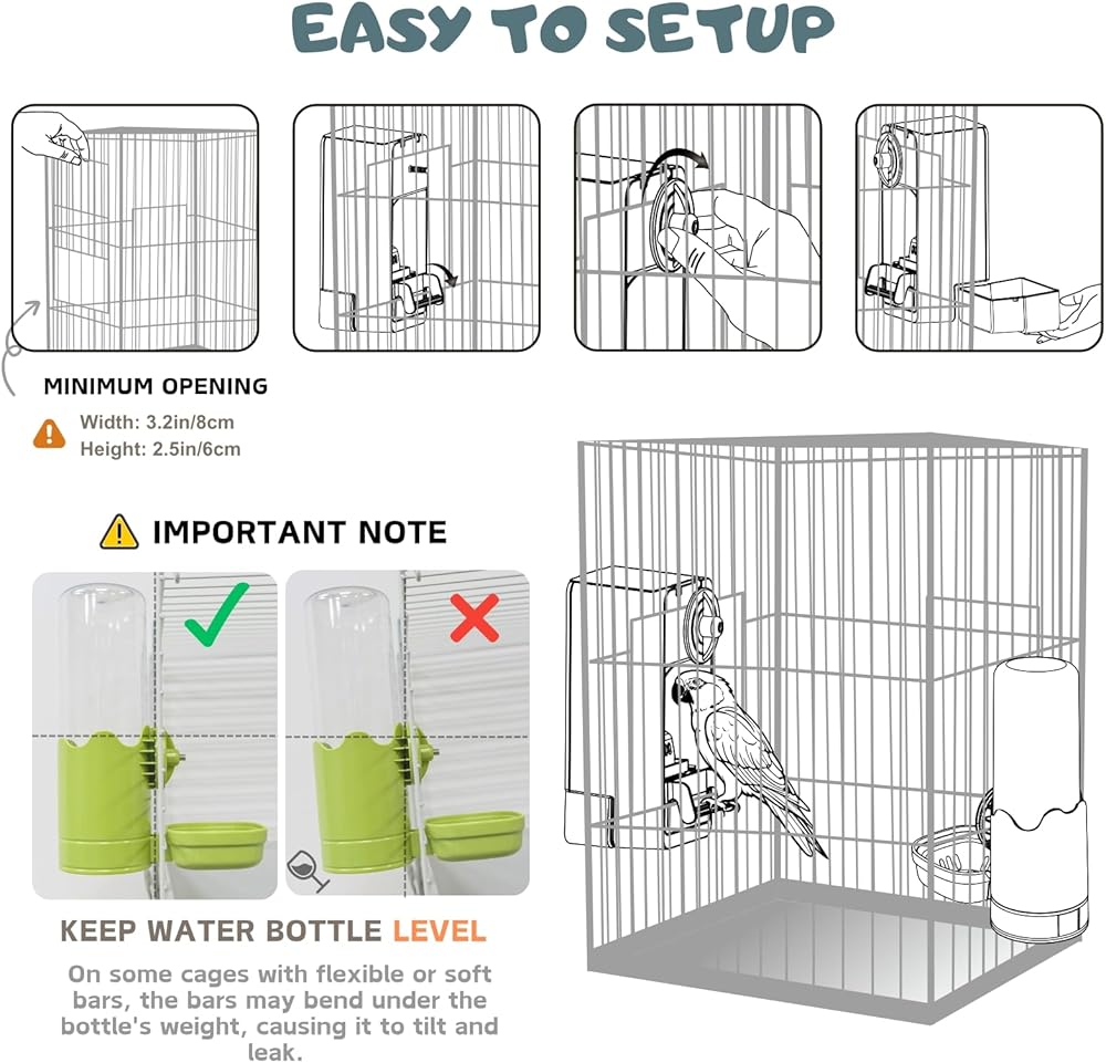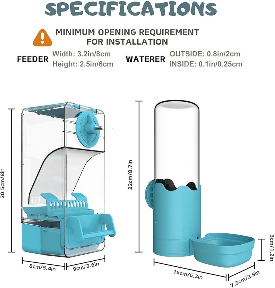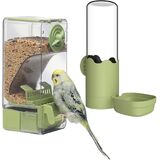 Complete Feeding Solution: This set includes an 18oz (550ml) seed feeder and a 17oz (500ml) water dispenser, ensuring your bird's nutritional needs are met for several days. It's perfect for serving a variety of grains and nutritious foods that your pet birds love.