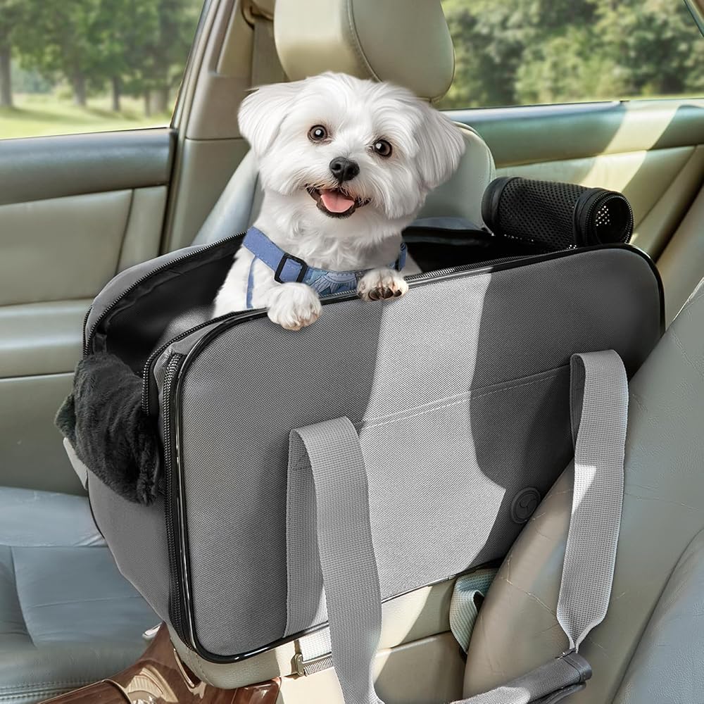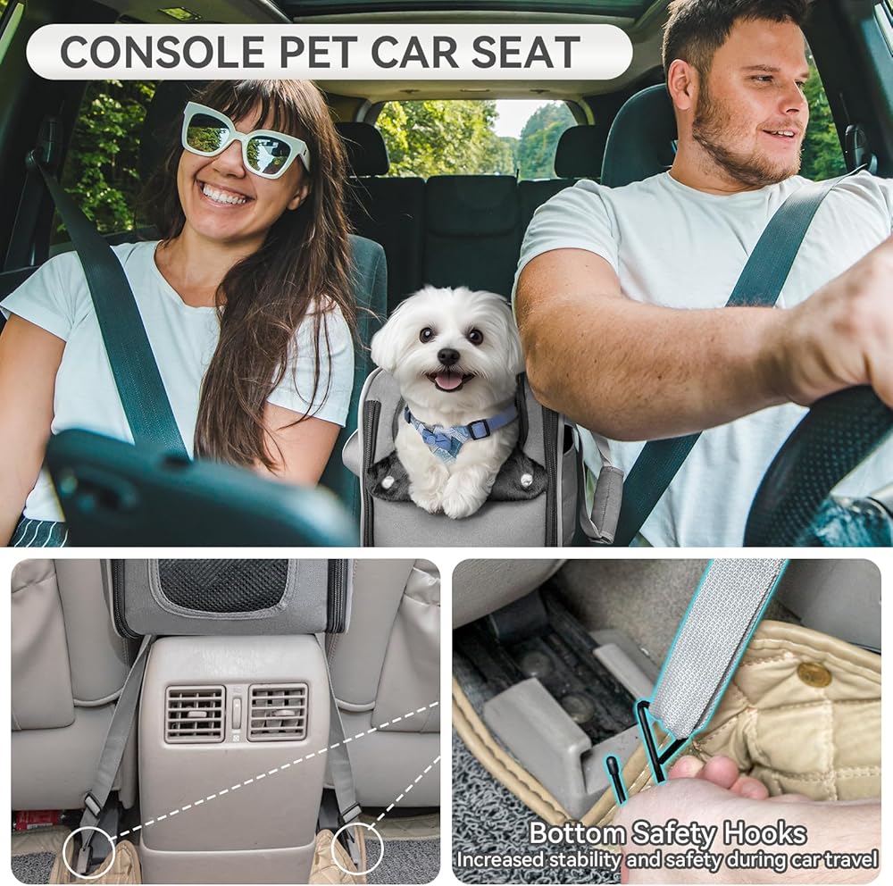 PETSFIT Multipurpose Center Console Dog Car Seat, Airline Approved Dog Car Carrier with Safety Tether and Pockets, Portable Cat Car Seat, Dog Car Seats for Small Dogs, Cats Up to 9 LBS (Deep Grey)