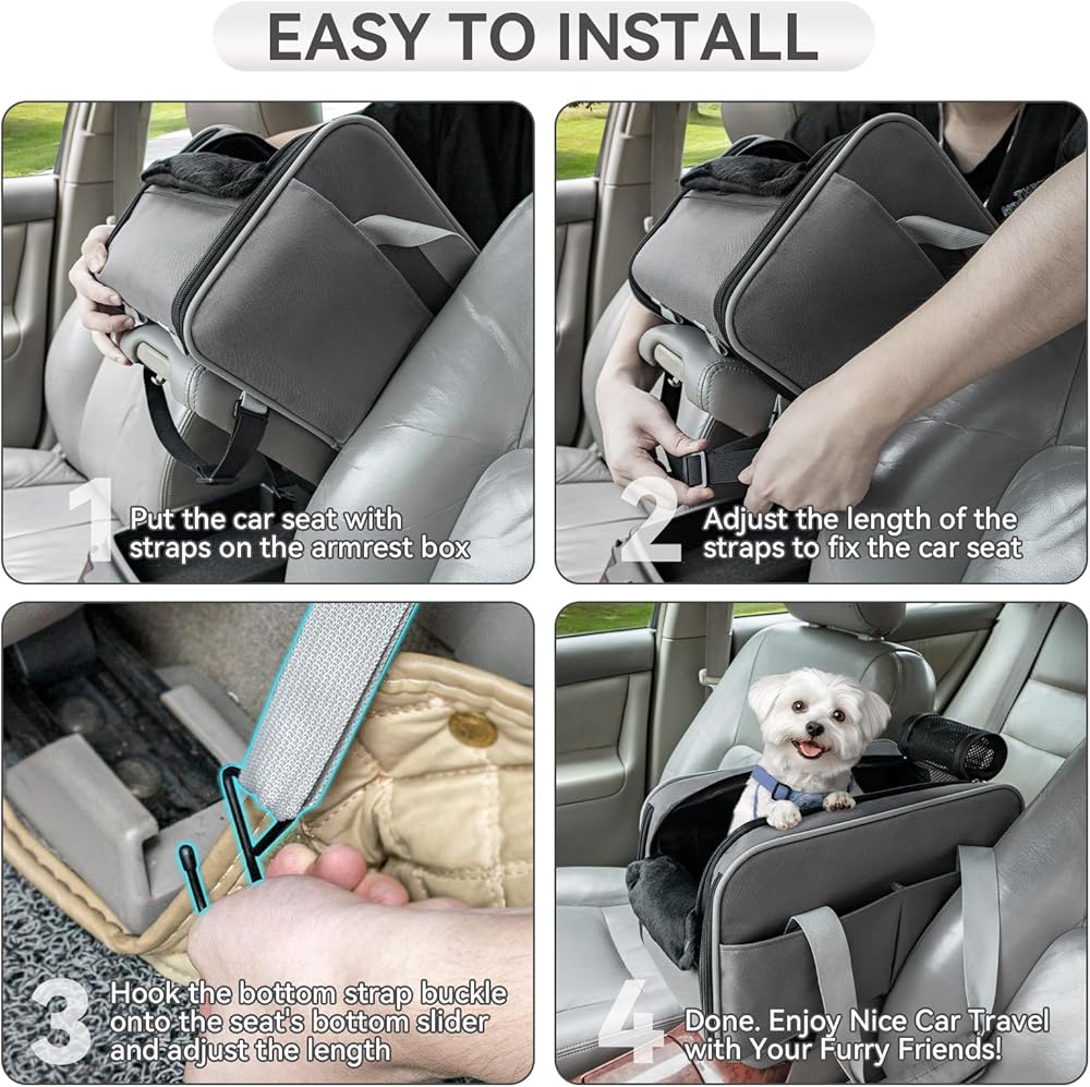 [Thoughtful Features for Every Journey] Convenience meets functionality with our cat car seat's design. A portable padding handle makes transportation a breeze, while 2 pockets offer ample storage for pet essentials. When not in use, the center console dog car seat effortlessly folds down for compact storage, ensuring it's ready for your next adventure.
