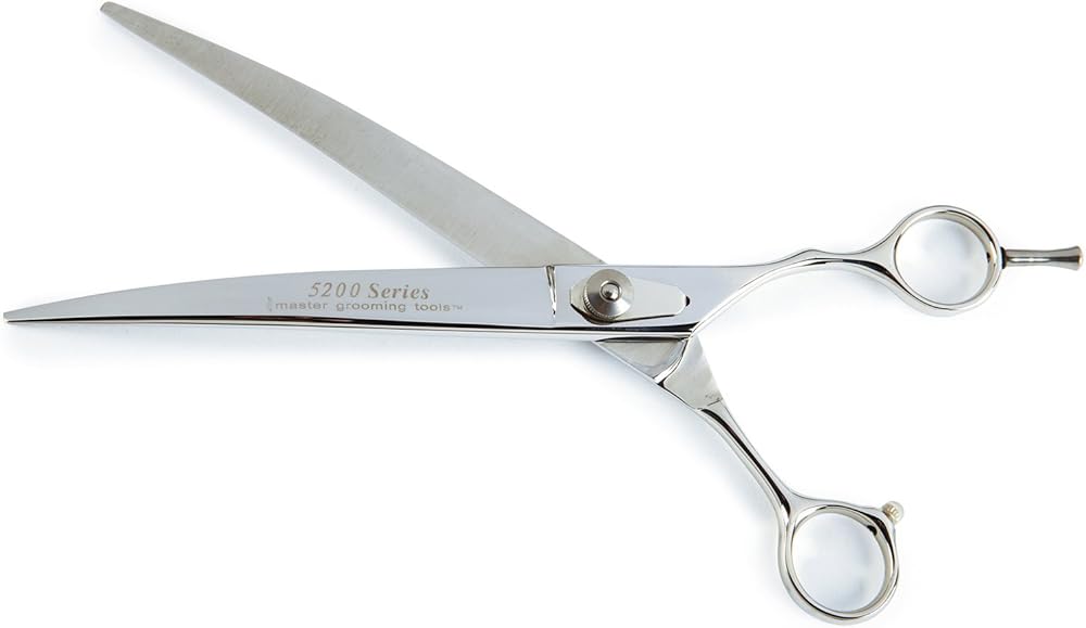 Master Grooming Tools Groomer Series Curved Shears are made from rust-resistant 440C stainless steel. Each shear features: