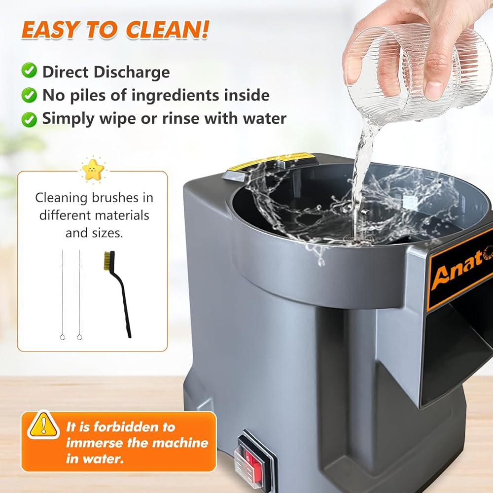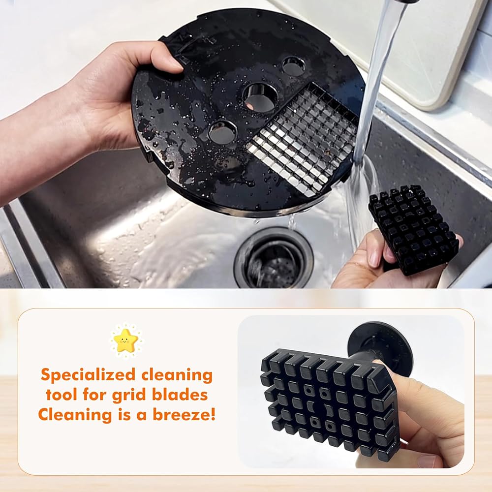 Effortless Cleaning: The direct-discharge design of the automatic vegetable slicer keeps ingredients from building up inside; with a cleaning tool specially designed for grid blades and three cleaning brushes, cleaning is a breeze