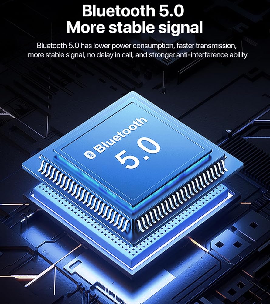 1: Adopt Bluetooth 5.0 chip, more power saving, low latency, no noise, realize stable and high quality audio transmission.