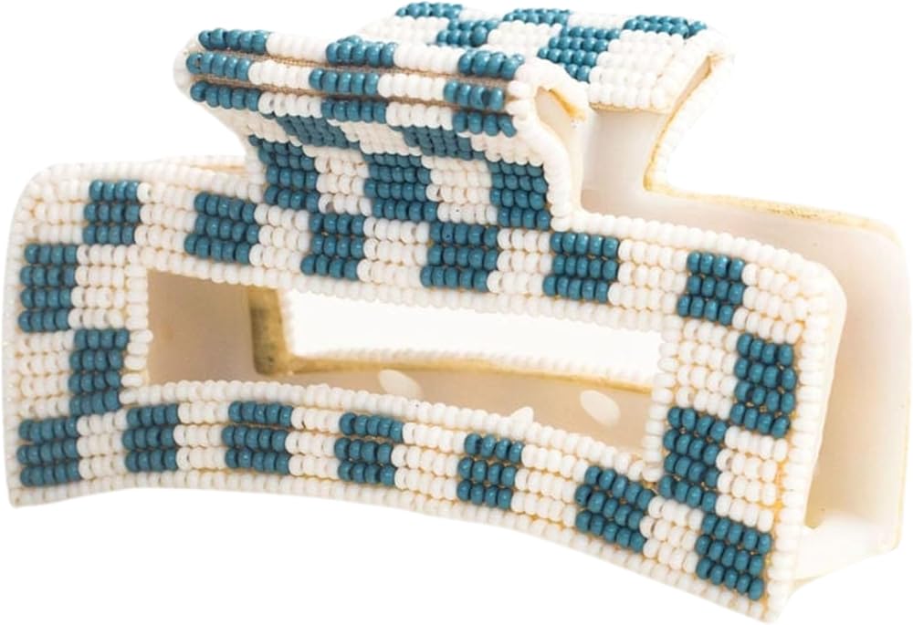 INK+ALLOY Beaded Hair Claw Clips, Game Day Claw Clips in Team Colors, Handmade Hair Clips for College Students, Sports Fans, Teachers, Alumni, Football Moms, 3.5-Inches (Light Blue Checkered)