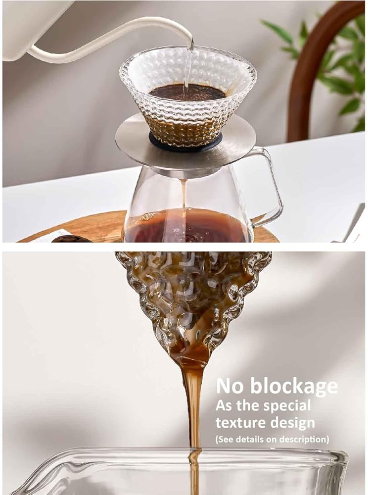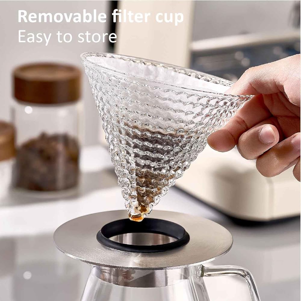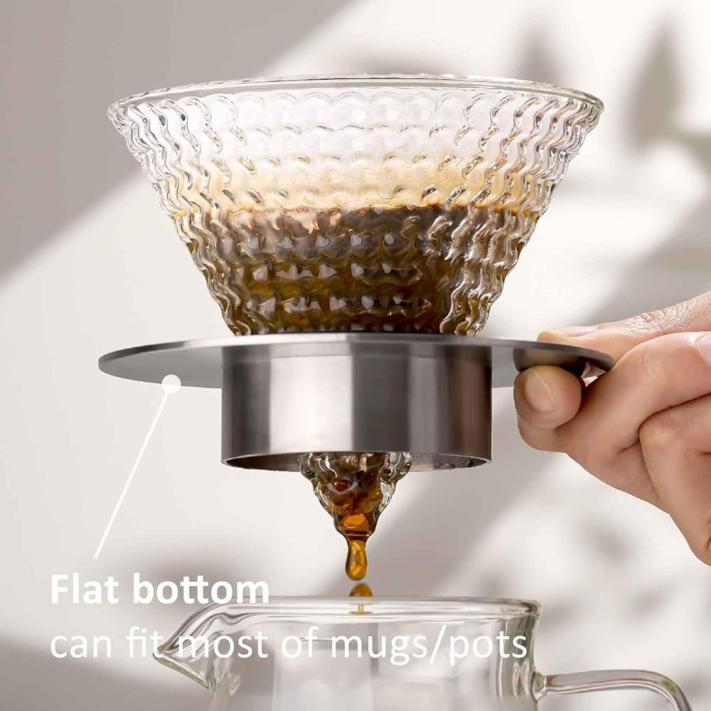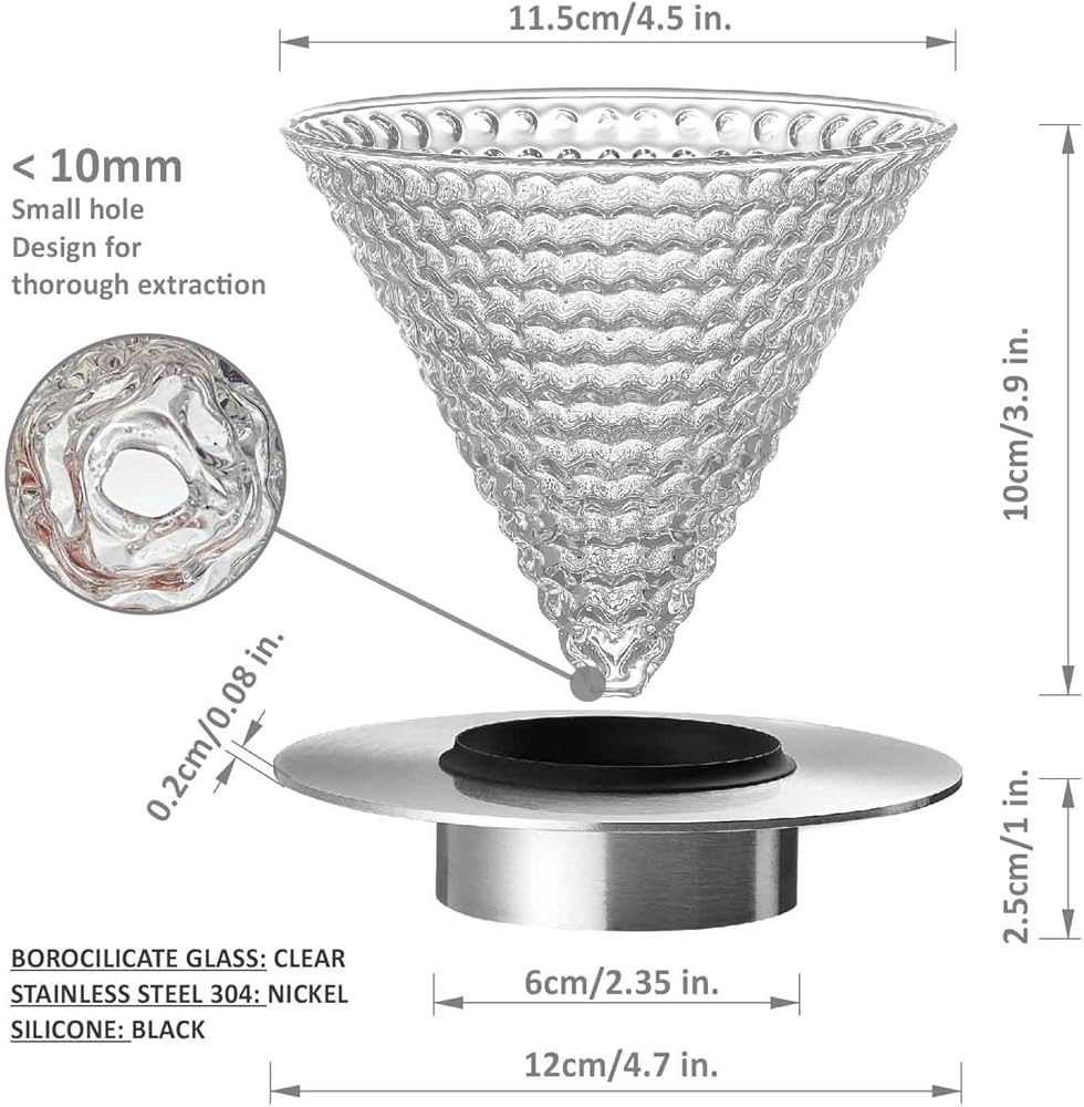 【Food Contact Material】The filter cup is made of high borosilicate glass,and the holder is made of stainless steel.Both of them are food contact materials, and resistant to cold & hot temperature difference, easy to clean and don't need to worry about the mycete.