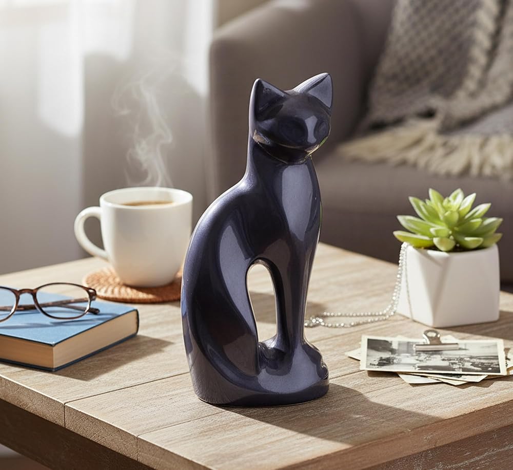 Suitable for storing FULL ashes of cats weighing 25 lbs or less before death. This cat-shaped full-size CREMATION URN is exclusively Handmade for your dear cat/pet.