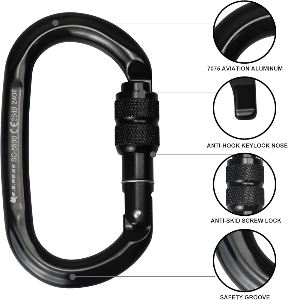 S.E.PEAK CE 24kN Oval Climbing Screwgate Clip for Outdoor Activities, Stormproof, Hiking, Mountaineering, Climbing, Camping, Fishing, Hunting, Skiing, Snowshoeing