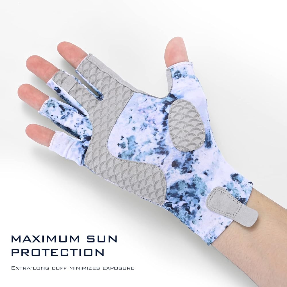 *KEY FEATURES – UPF 50 UV protection fingerless fishing gloves for your hands – Breathable poly-spandex material – Re-enforced wear points – Integrated pull tabs – Fashionable Boulder colors by Prym1 Camo.