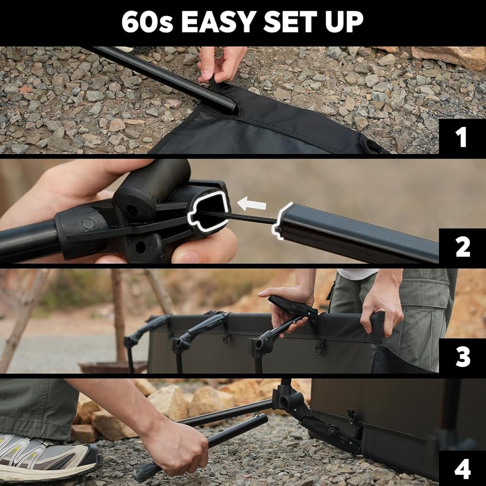 Newly Reinforced Latch: Featuring upgraded locking mechanisms portable cots, outperforms standard military cots in durability and sturdiness. With enhanced ease of operation and improved safety, different age groups find assembly effortless.