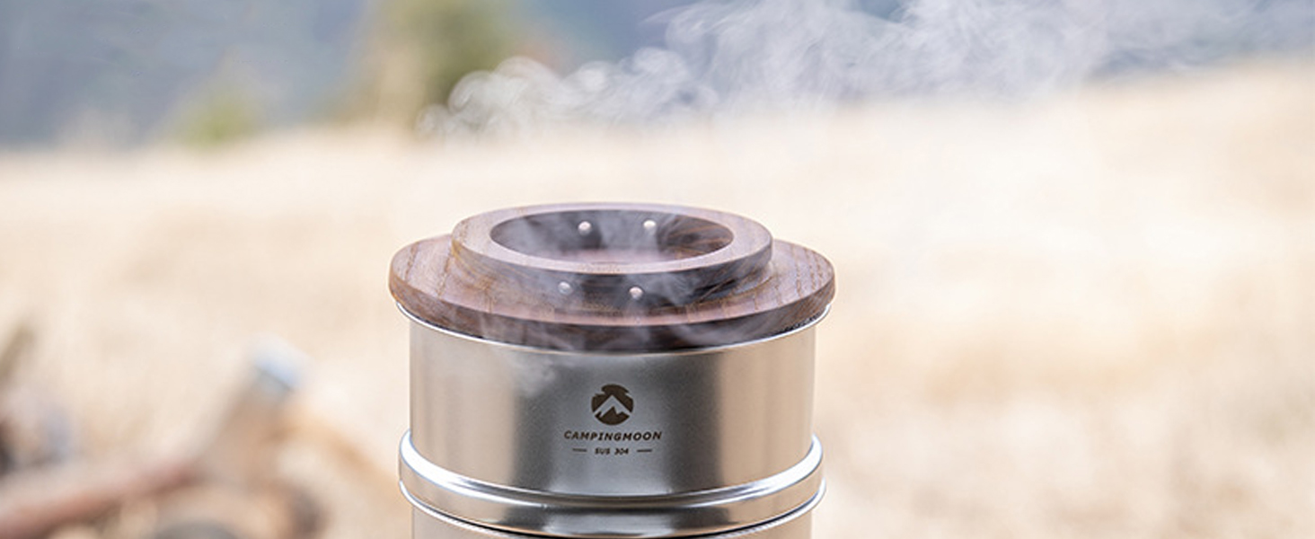 A stainless steel mini steamer with wood lid. *This mini steamer needs to be used with Sierra cup that is sold separately.
