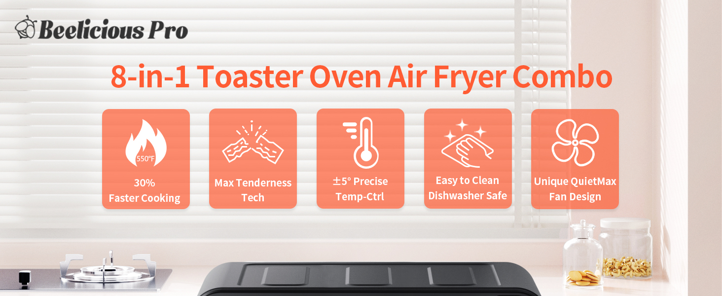 【40+ Cookbook & 4 Accessories】 Step-by-step visual instructions make it easy to cook even if you are a beginner. Stay inspired to cook with an included cookbook of 40+ original recipes by Beelicious Pro chefs. Included air fryer backet, oven rack, drip pan, baking pan.