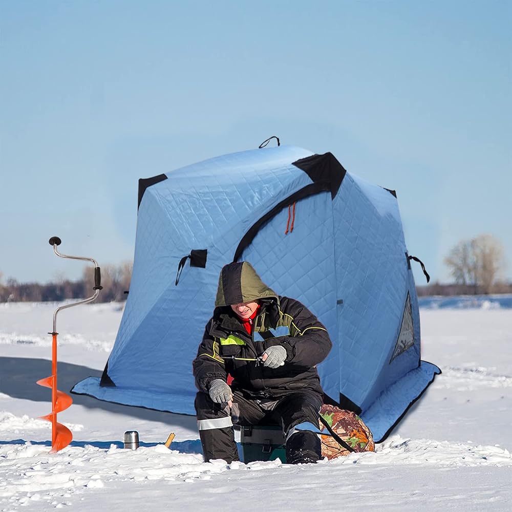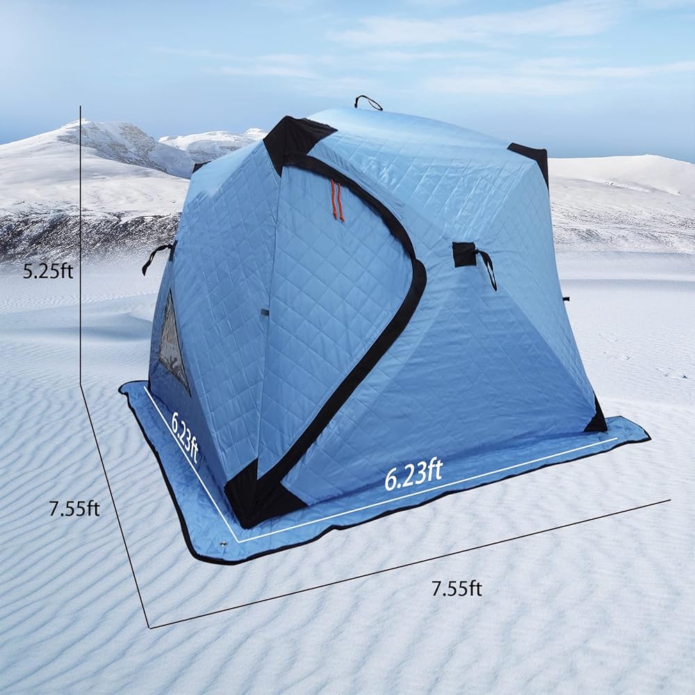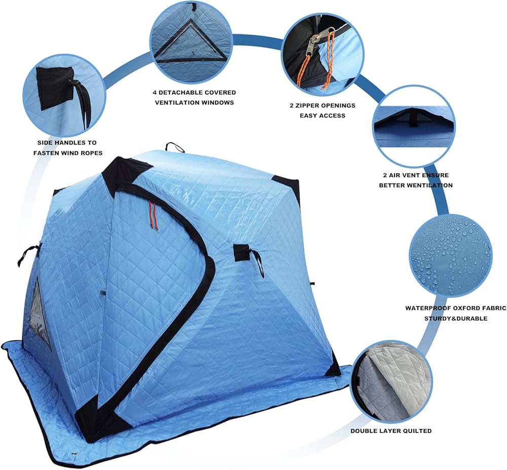 Easy Assembly — It contains strong flexible poles that make the tent easy to assemble and easy to tear down according to a clear instruction. One person can easily set up the ice fishing tent, and fast take it down within a few minutes.