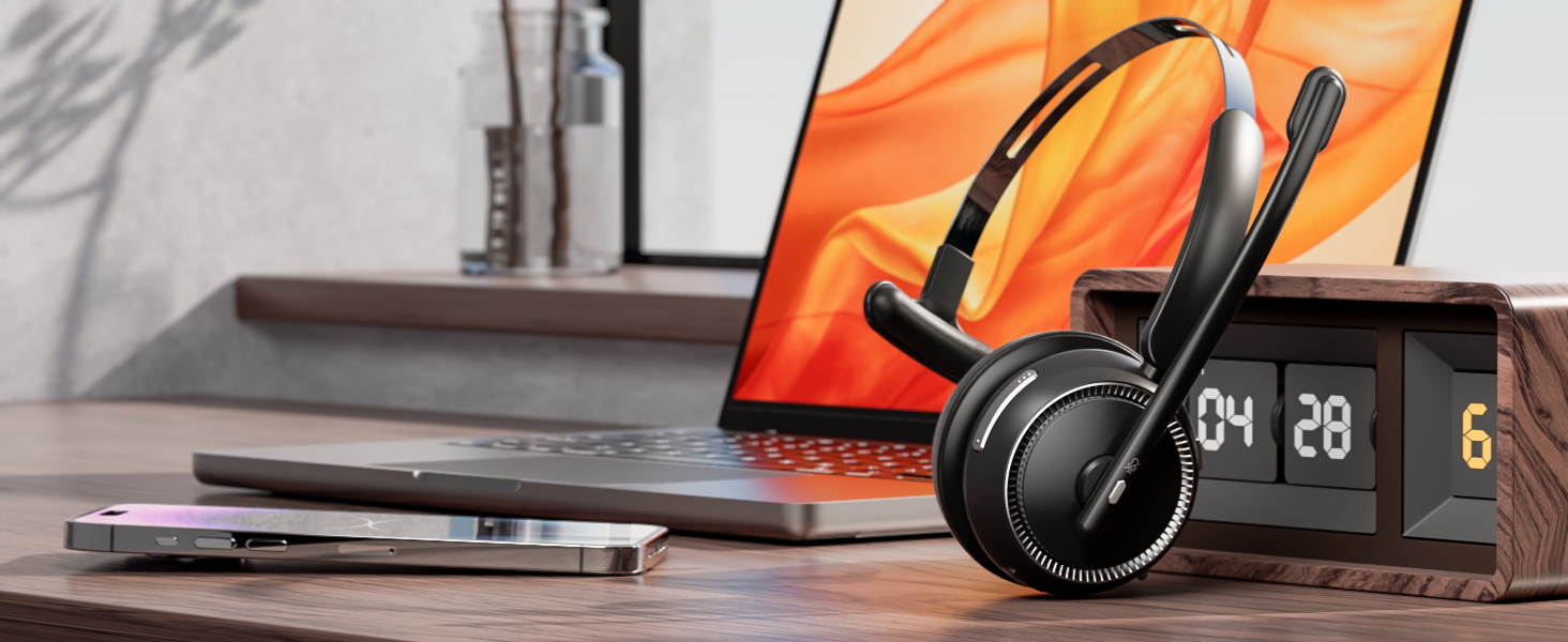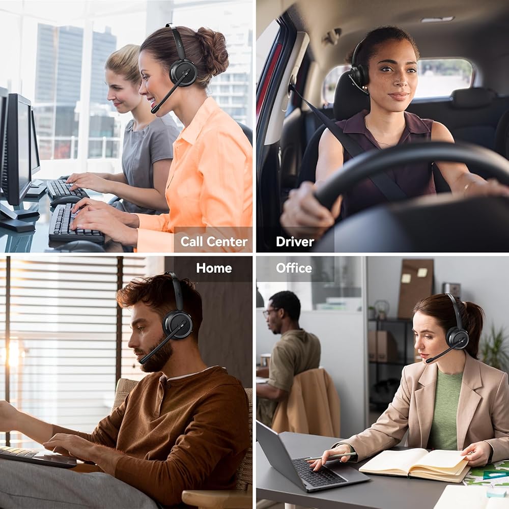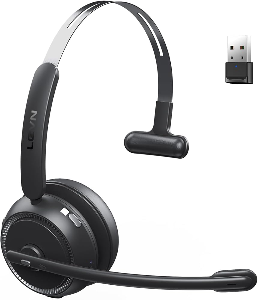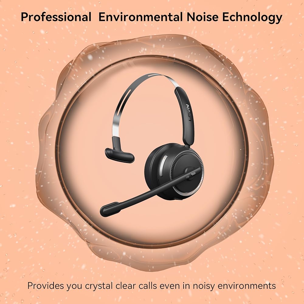 LEVN Wireless Headset with Mic for Work, Bluetooth Headset with Microphone(AI Noise Cancelling), 65Hrs Working Time Wireless Headset with Microphone for Work from Home/Call Center/PC/Computer/Teams