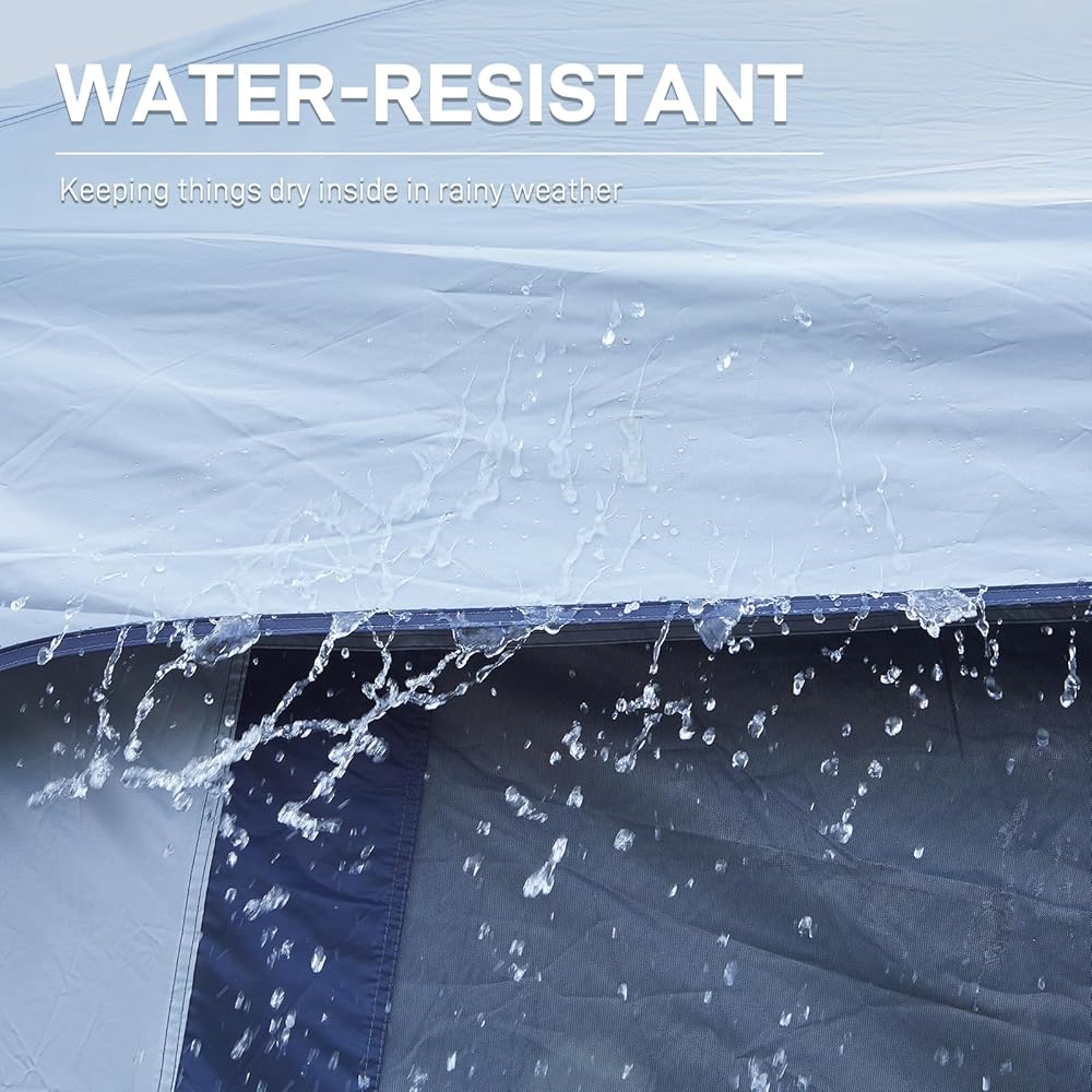 【WATER RESISTANT&UV PROTECTION】: Made of high quality water resistant fabric with sunscreen coating, providing you with a more comfortable space when camping outdoors.