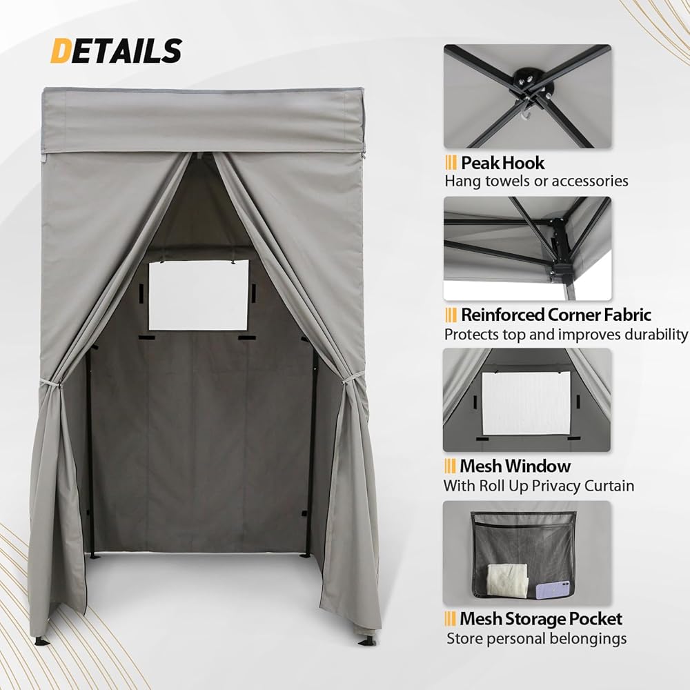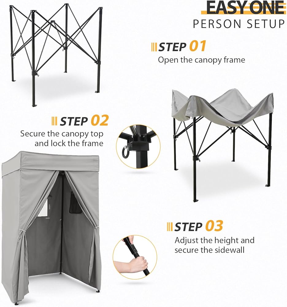 INSTANT POP UP PRIVACY CANOPY/SHELTER/CHANGING ROOM: 5x5 canopy changing tent for two or more people. Perfect as a changing room for all indoor and outdoor activities including for fashion shows, photoshoots, dance class, camping, backyards, pool parties or use as a showering tent, portable toilet shelter.