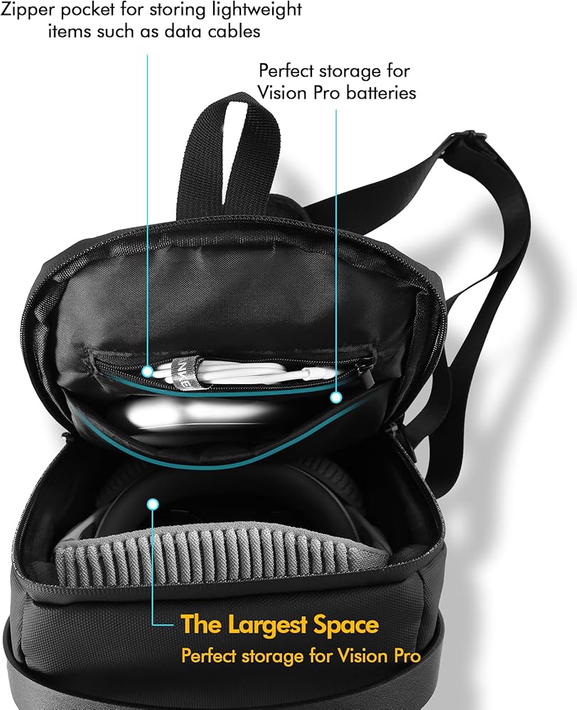 • All in One Shoulder Bag: Not just for Vision Pro and its accessories, but can also store extra cables, batteries and plugs, making the VR experience longer and more enjoyable.
