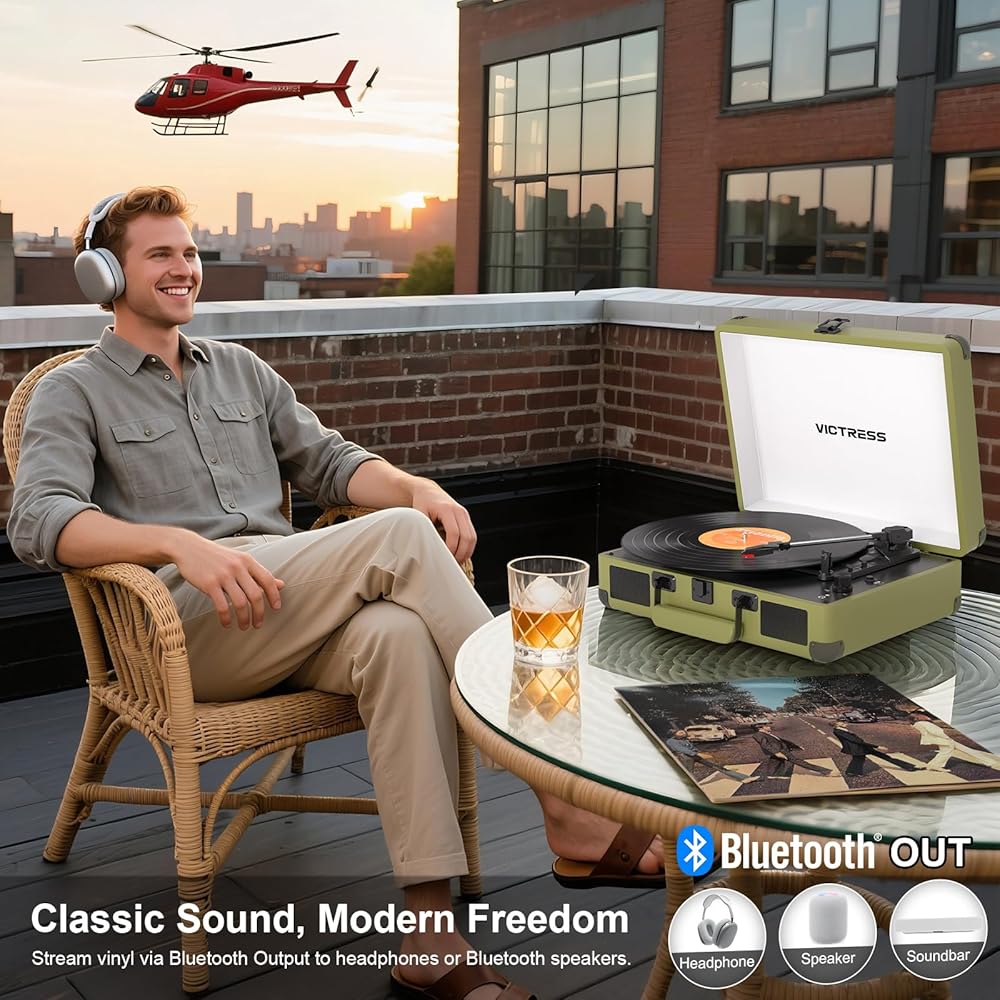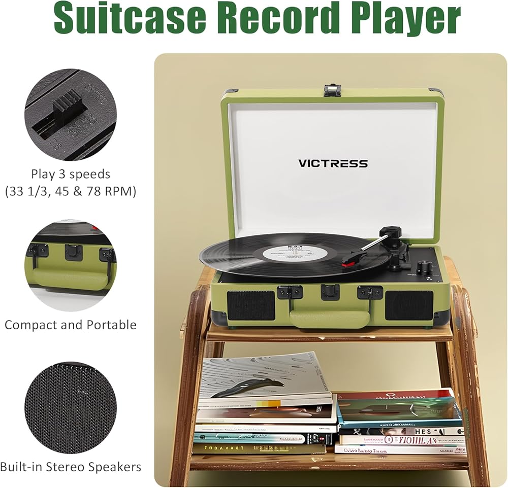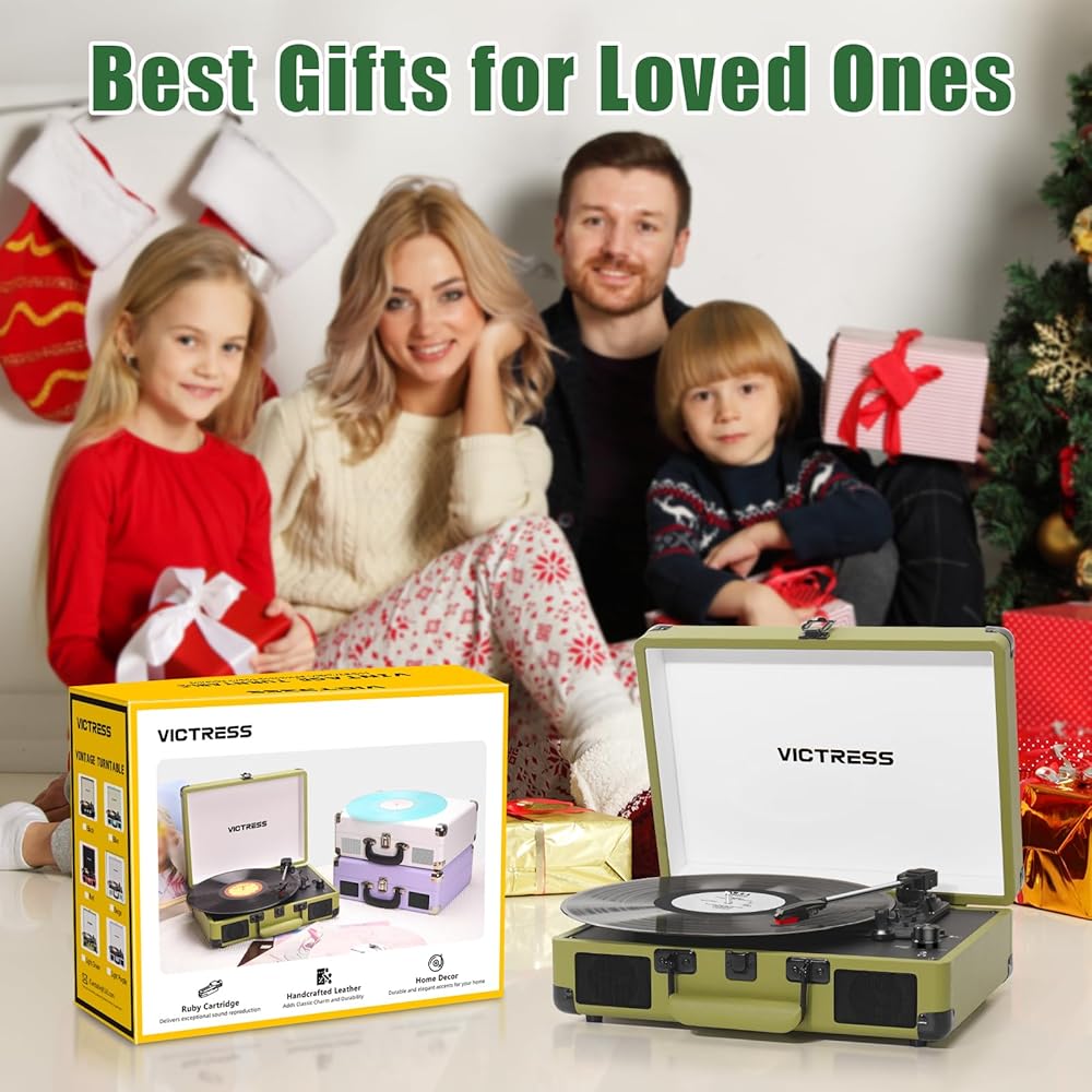 RETRO SUITCASE DESIGN: The VICTRESS record player combines the look of a vintage portable with modern functionality, making it perfect for the home, dorm room, or travel. The attractive look makes it an ideal gift for special occasions such as Christmas or birthdays