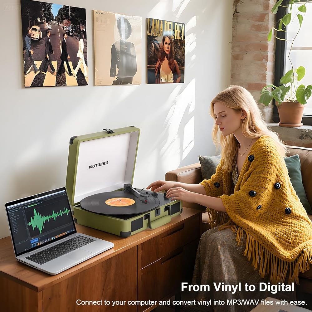 3-SPEED TURNTABLE & PC RECORDING: Play your vinyl collection (3 sizes of 7/10/12″) with a 3-speed turntable (33, 45, 78 RPM) and enjoy HI-FI sound. Easily convert your records to digital format with the USB recording function to preserve your precious memories
