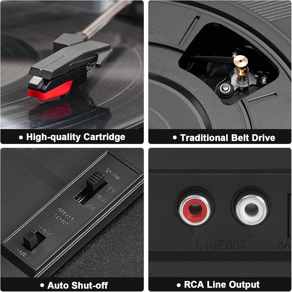 EASY OPERATION & AUTO STOP: This vinyl record player has a simple control panel with clear labeling. The AUTO STOP function stops the turntable when the record is finished playing, making it ideal for beginners and perfect for introducing vinyl records