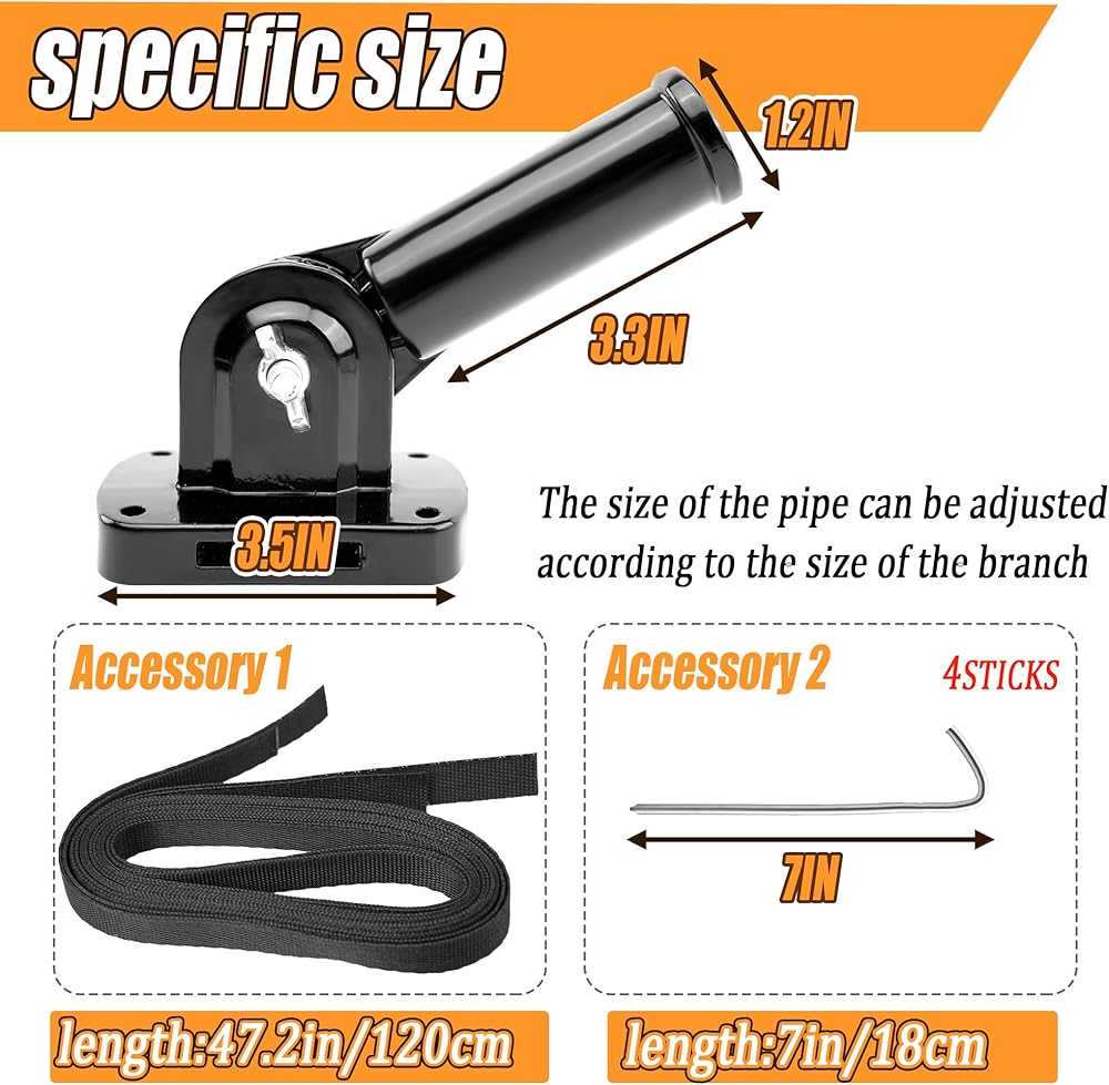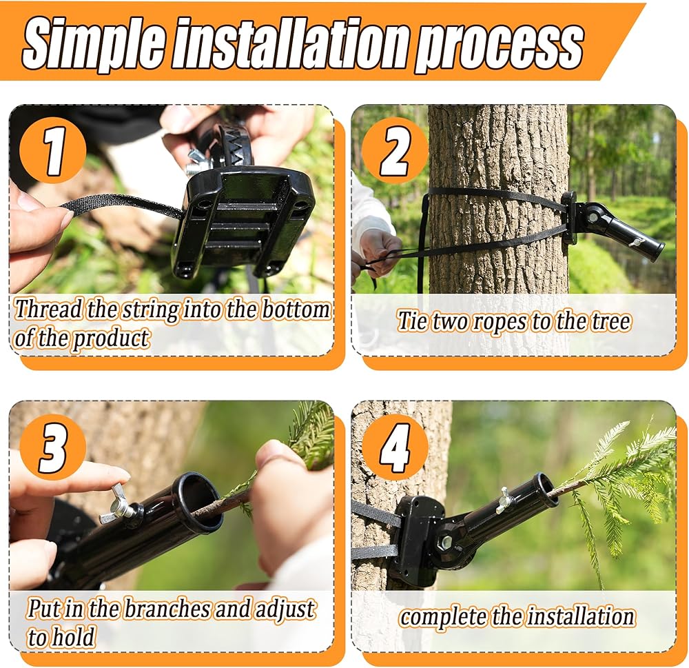 【2 Installation Method 】Insert the branch into the support and fix it with screws.You can fix it on the ground with the included 4 long screws and cover it with excess soil.or Pass the two attached suspenders through the flagpole support and then adjust the suspenders to fix it on the tree according to the size of the object.
