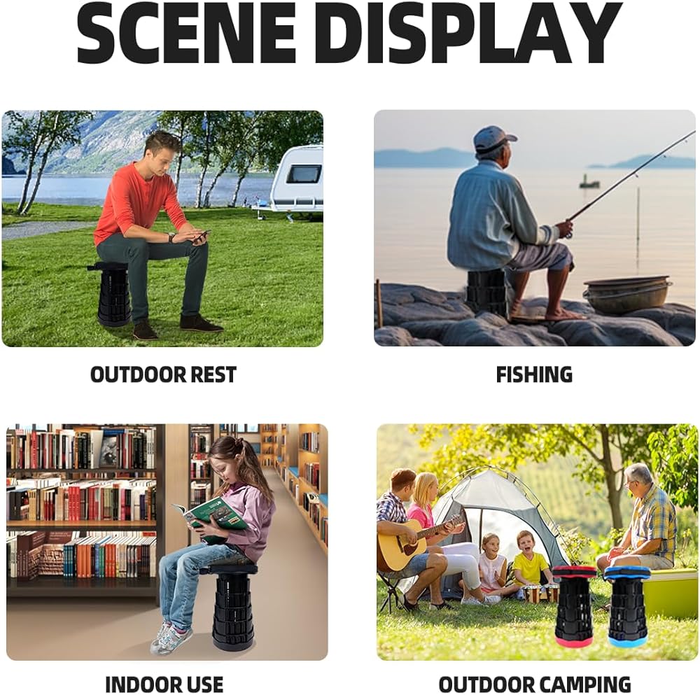 Easy to Use, Multipurpose: Simply grasp both ends and pull with a gentle twist to effortlessly unfold this stool, making it perfect for a wide range of indoor and outdoor activities. Transition seamlessly from indoor spaces like the living room, bedroom, kitchen, and office to outdoor adventures like hiking, BBQs, camping, and fishing. Its versatility and ease of use make it an indispensable companion for any occasion.