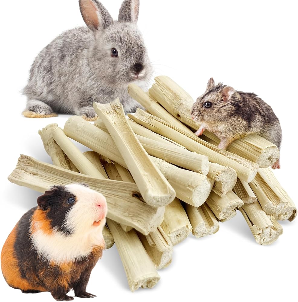 PROMOTES POSITIVE DENTAL HEALTH: Pet bamboo sticks are a bit sweet and nutritious.They can also help pets to ensure the healthy growth of small pet teeth. Veterinarians recommend giving your cage pet safe wooden chewing toys to help them keep their teeth clean and healthy.The crunchy fiber promotes healthy teeth and oral health, and can also trim long teeth (like the front teeth of rabbits and hamsters) to prevent painful overgrowth