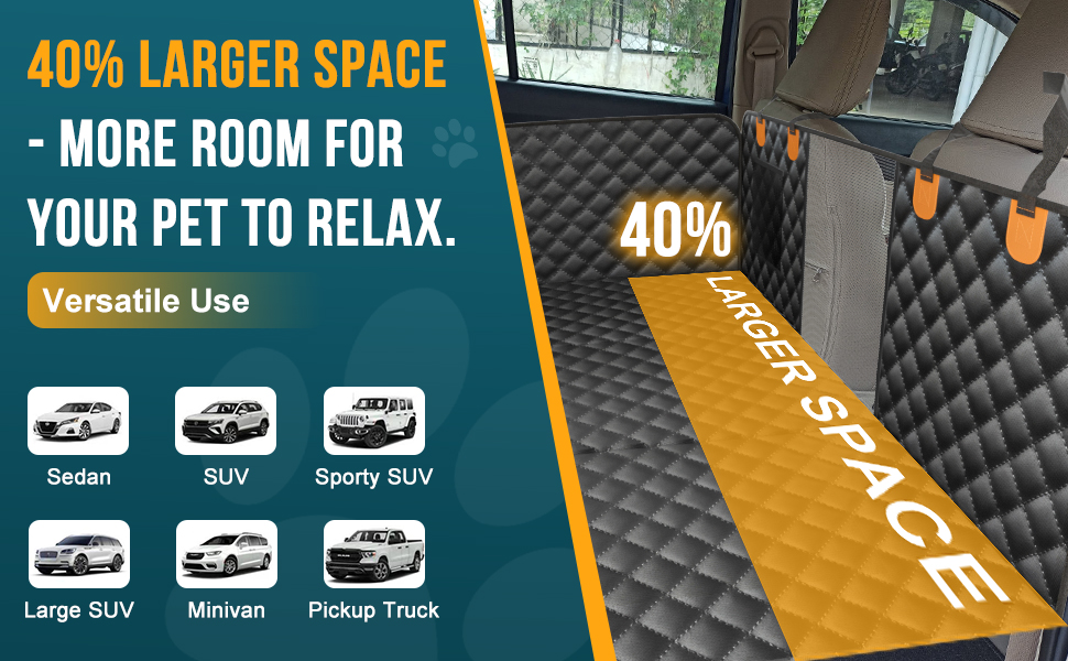 تغطية وحماية كاملة للمقعد الخلفي: تم تصميم غطاء مقعد السيارة الخلفي هذا لتغطية المنطقة الخلفية لسيارتك بالكامل، مما يضمن حماية مقاعد سيارتك من الخدوش والفراء والأوساخ. توفر اللوحة السفلية السميكة متانة معززة، مما يجعلها مثالية للكلاب الكبيرة والحيوانات الأليفة الكبيرة جدًا.