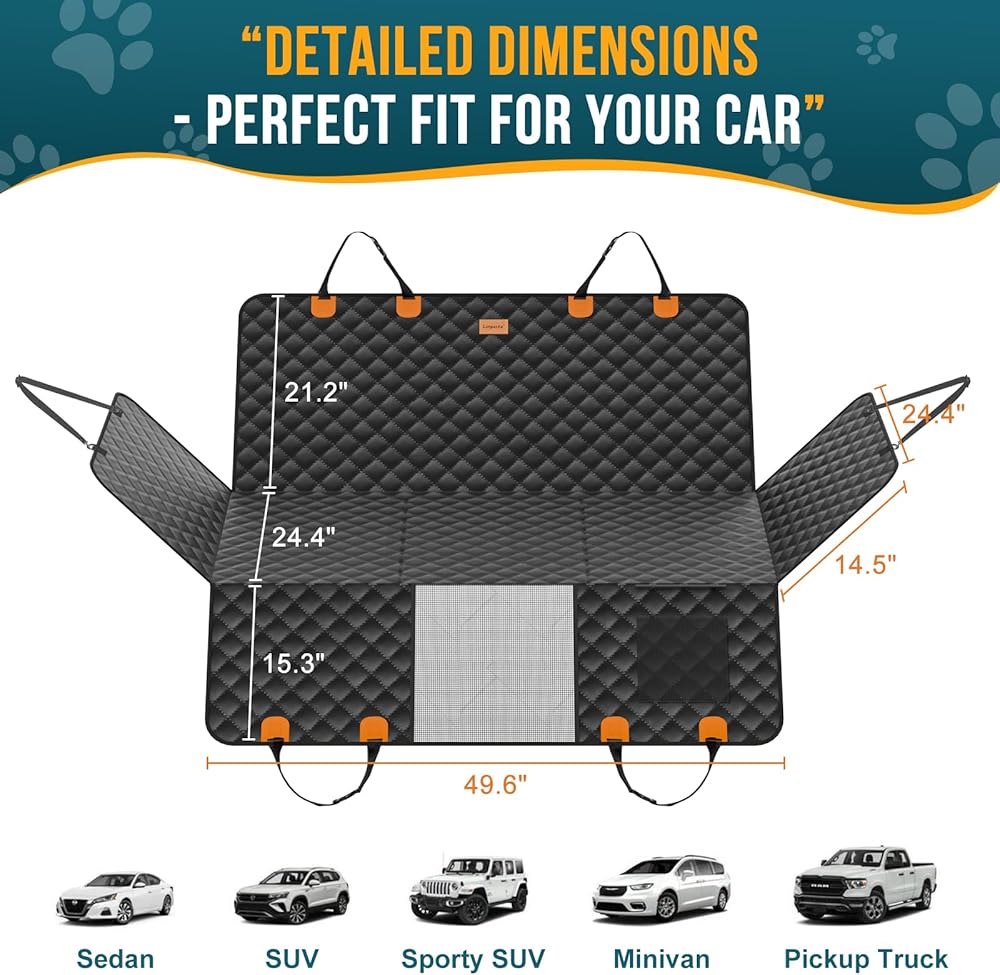 مثالي للسيارات الصغيرة وسيارات الدفع الرباعي: تم تصميم غطاء مقعد سيارة الكلاب هذا خصيصًا ليناسب سيارات السيدان الصغيرة وسيارات الدفع الرباعي، مما يوفر ملاءمة عالمية ومريحة. من السهل تركيبه وتعديله ليناسب معظم أنواع المركبات، على الرغم من أنه غير مناسب للمقاعد الخلفية للشاحنات.