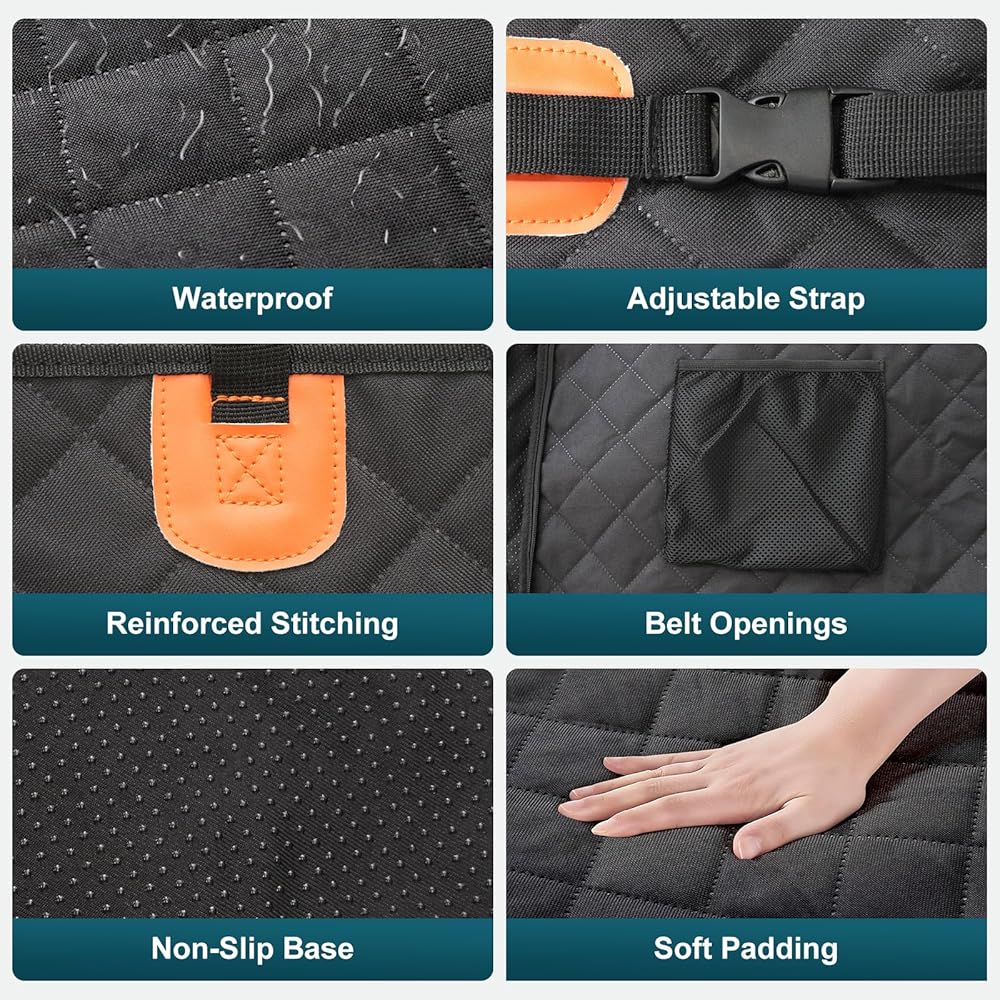 مقاوم للماء وسهل الصيانة: مصنوع من مواد مقاومة للماء، مقعد السيارة المخصص للكلاب الكبيرة هذا يحمي سيارتك من أي انسكابات أو حوادث أو أوساخ. يمكنك تنظيفها بسهولة بمسحة بسيطة أو عن طريق وضعها في الغسالة، مما يحافظ على سيارتك منتعشة ونظيفة.