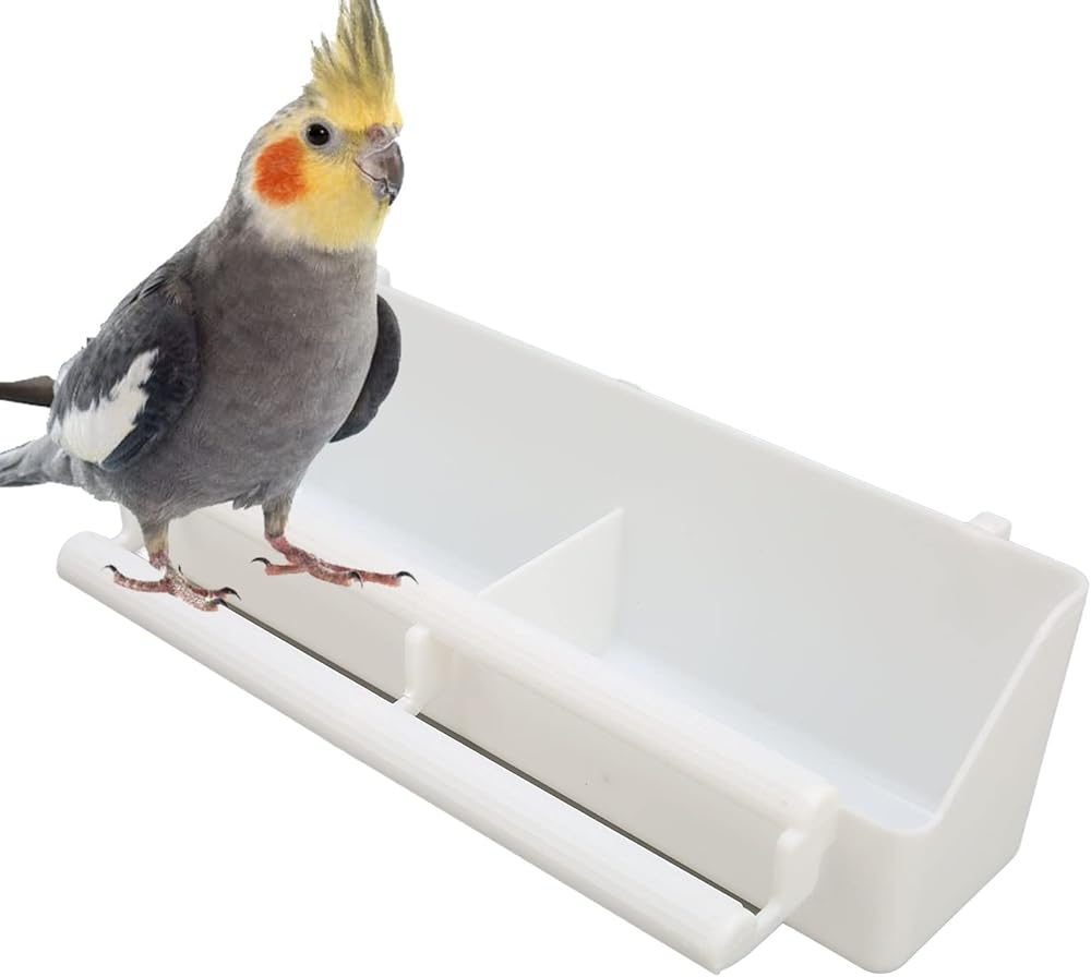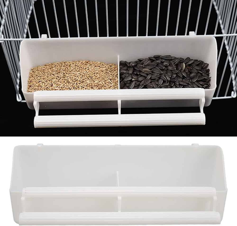 DOUBLE CUPS: Bird cage feeder is designed with double cups and has a baffle in the middle, one box for two uses and a wider range of uses.