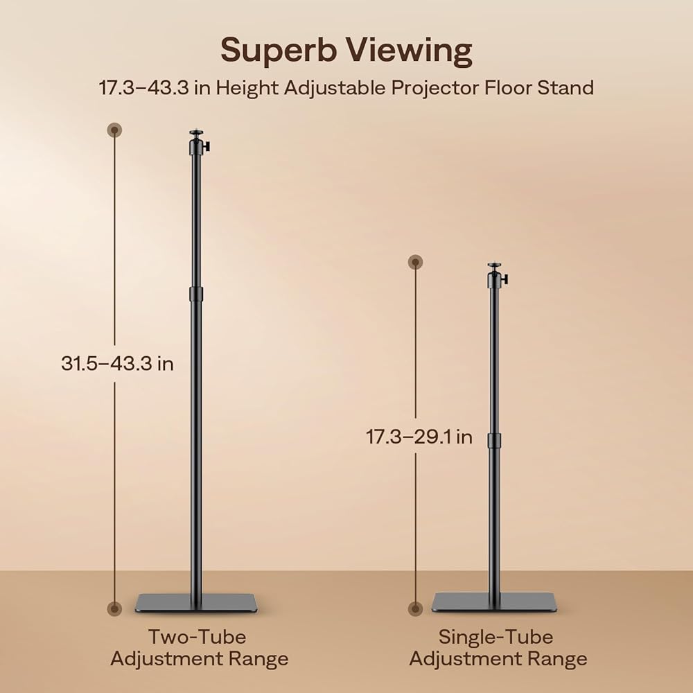 Adjustable Height: Easily adjust projector stand height without any tools thanks to the telescopic pole with convenient twist lock. Choose the comfortable viewing height between 15.75"-47.24" to project your image exactly where you want it