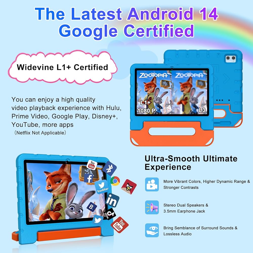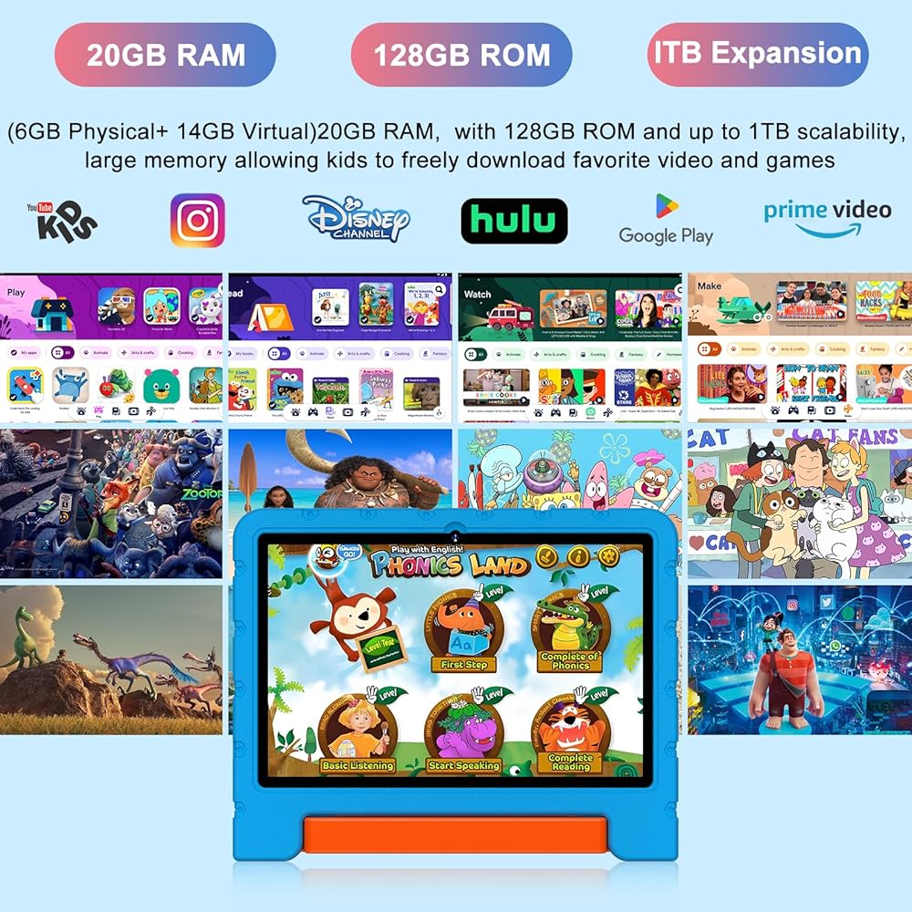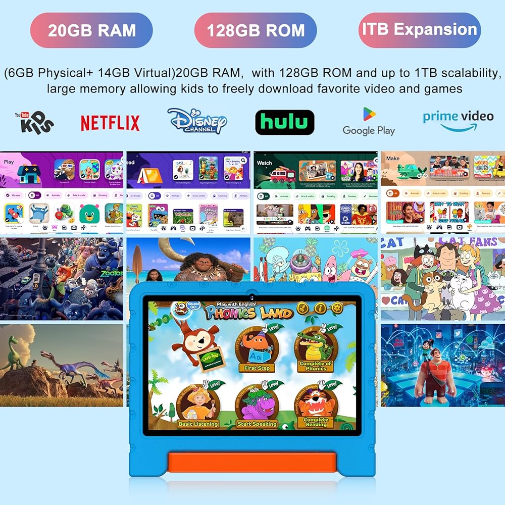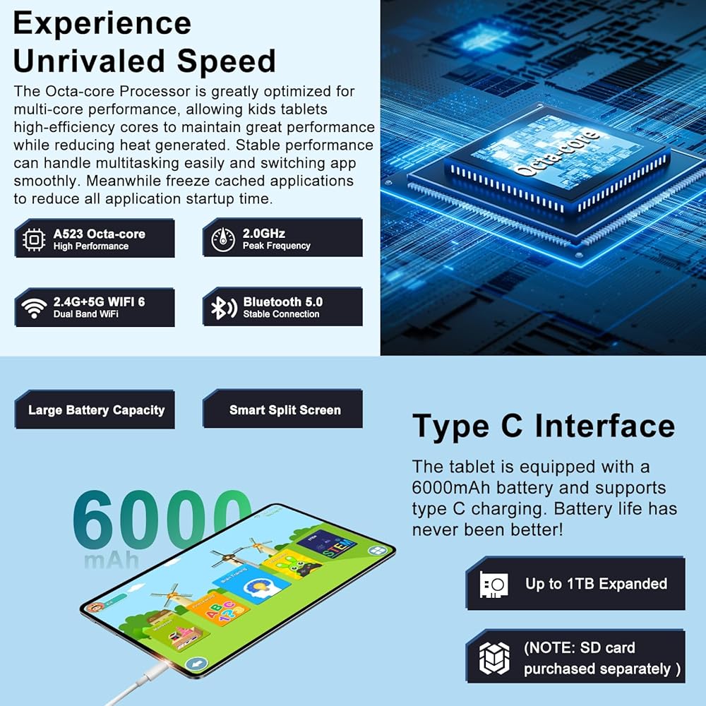 2024 Newest Kids Tablet 10 inch Android 14 Tablets for Kids Octa-Core, 20GB+128GB (TF 1TB), child Tablet with Shockproof, 2.4G+5G WiFi 6, Parental Control, Face Unlocked,Split-Screen