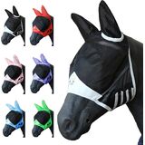 T TEKE Fine Mesh Horse Fly Mask w/Ears, UV Blocking 3D Eye Visor with Extra Fleece Cushioned Forehead, Protection from Insect Pests