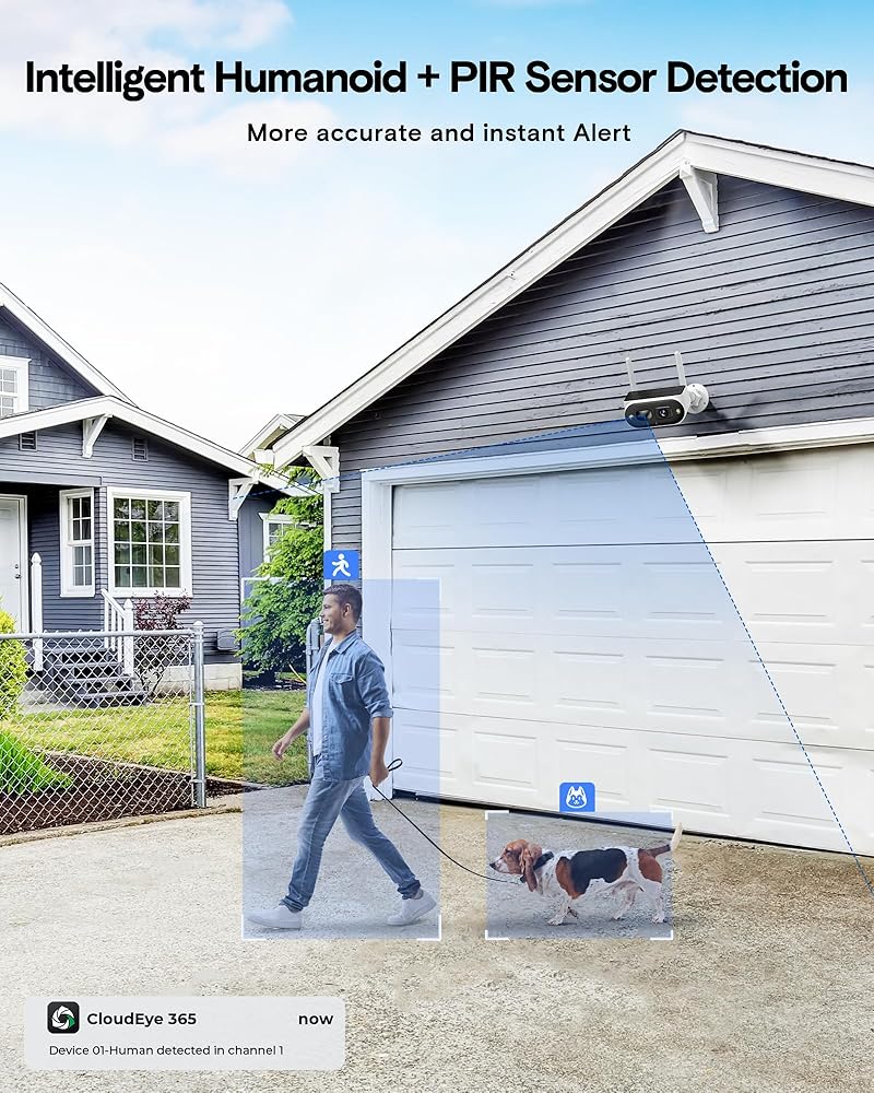 Intelligent Human Detection & APP Push: These Solar home security cameras are equipped with advanced motion sensors and humanoid technology, ensuring you get more accurate App notifications on your smartphone,smartwatch,tablet,PC. The notification comes with a picture preview which helps you quickly act to it