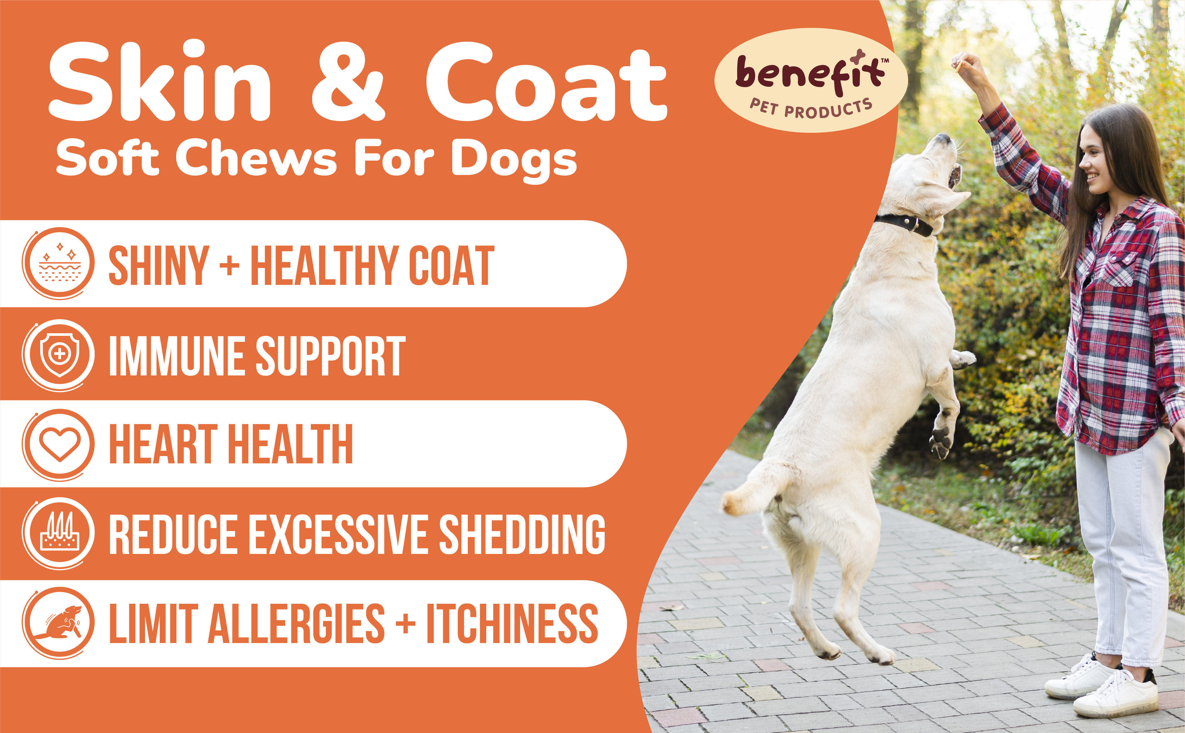 Advanced Skin & Coat Care - Specifically formulated with salmon oil and Omega-rich ingredients to combat itching, dry skin, and hot spots, our chews deeply nourish your dog's skin, reduce excessive shedding, and promote the growth of a shiny, soft coat. Say goodbye to flaky, irritated skin and hello to a healthier, happier pet.