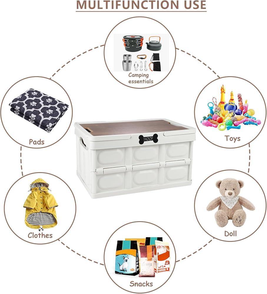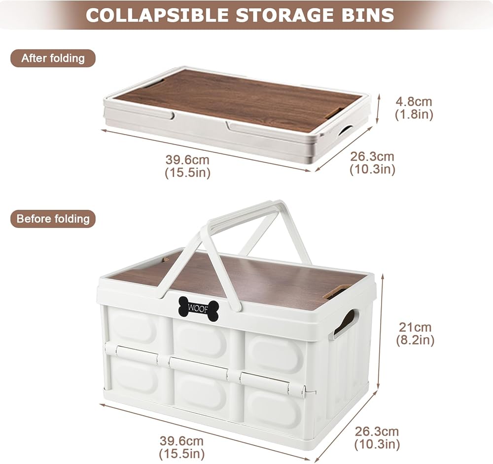 6.Foldable and Easy to Instal, This lidded storage box features a convenient foldable design, making it easy to assemble and disassemble. Set it up in no time and enjoy hassle-free storage and table functionality wherever you go.